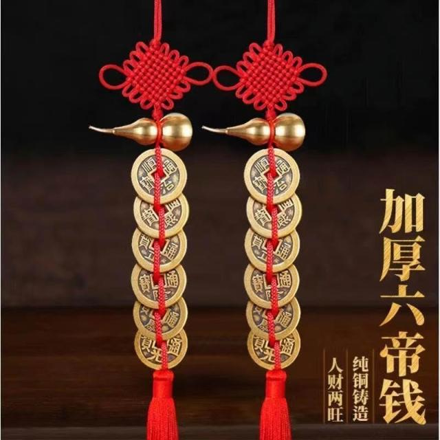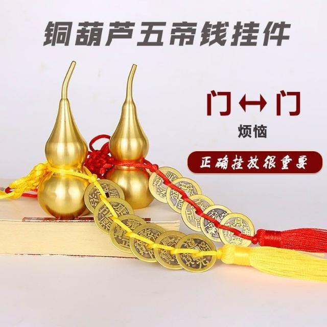新款促销#純銅葫蘆五帝錢純銅六帝錢吉祥結掛件門對門厠所臥室送硃砂