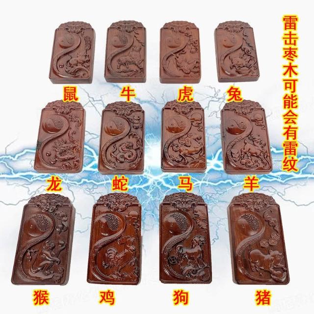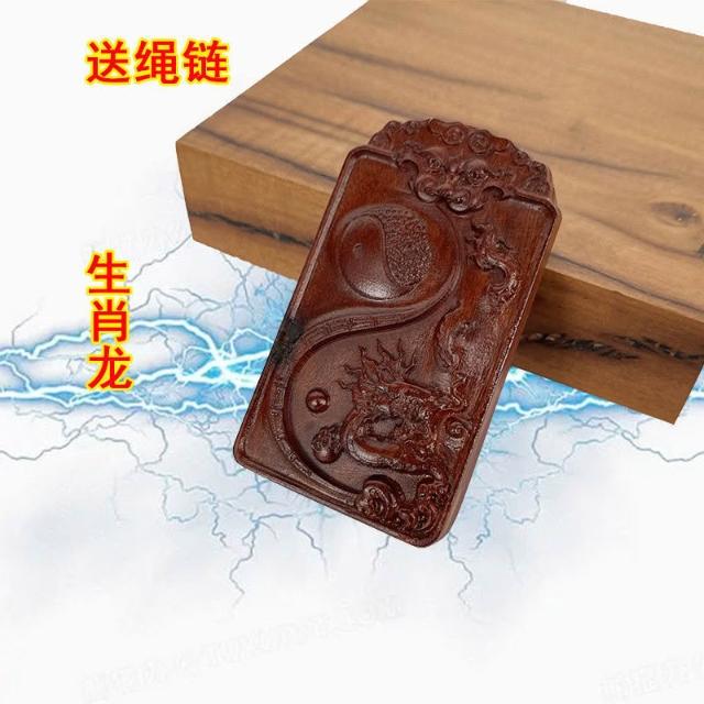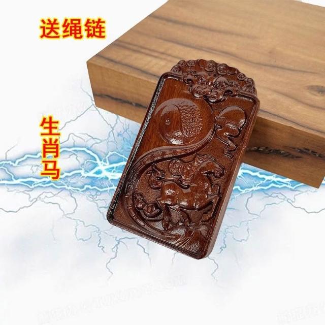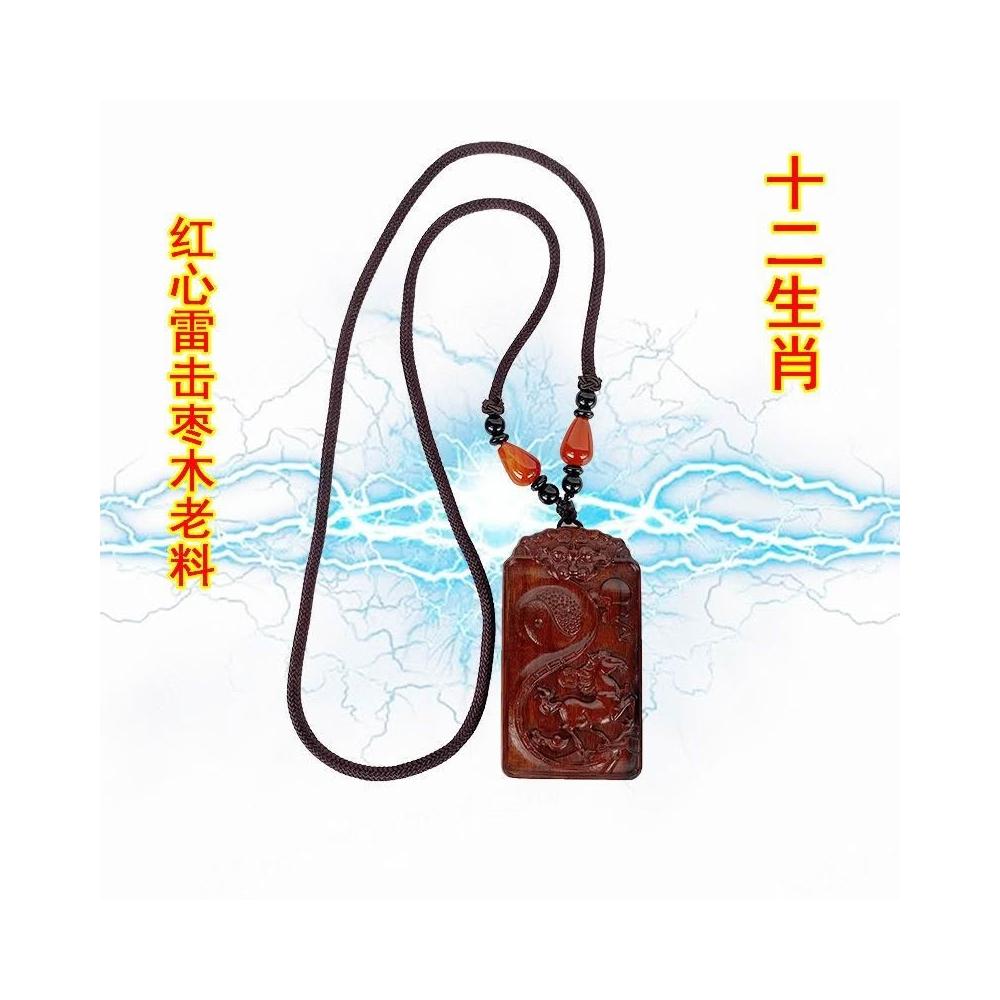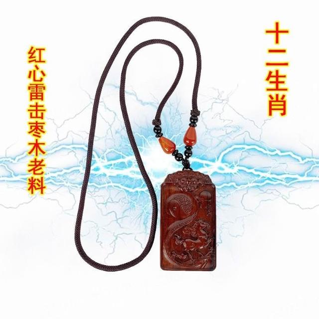 道士用品雷擊棗木項鏈十二生肖掛牌紅心老料實木浮鵰弔墜飾品掛件