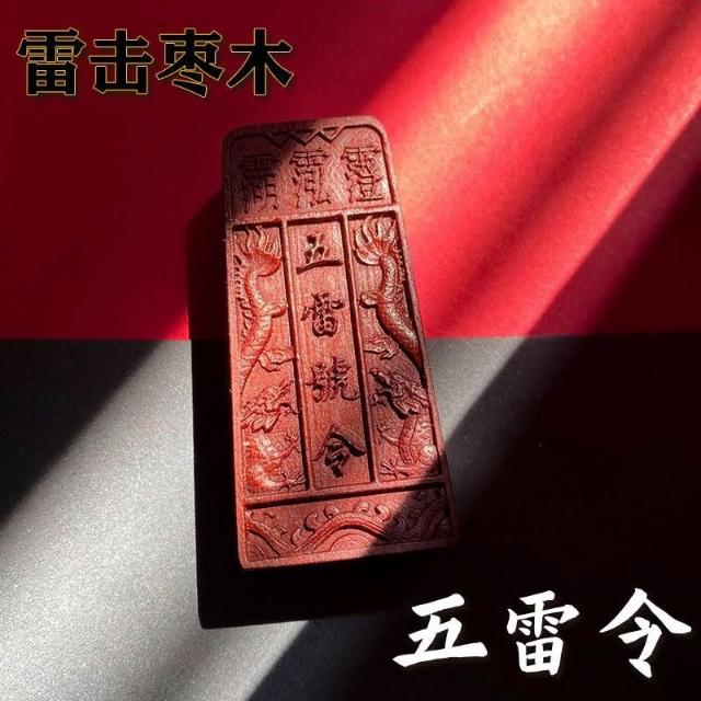 精品雷擊棗木道傢法器飾品弔墜紫薇諱五路諱五雷令鵰刻掛件配飾