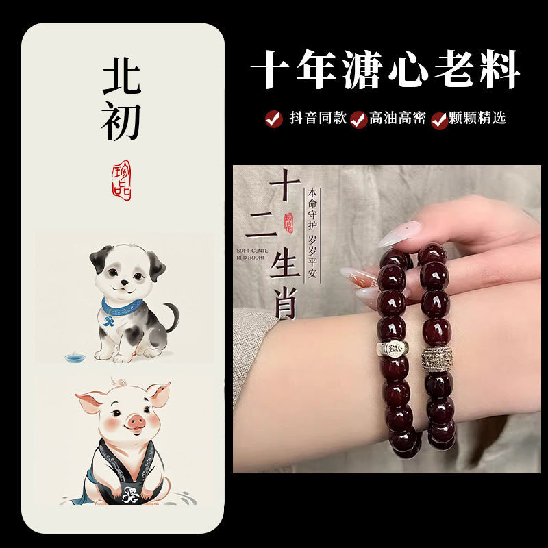 小衆純天然保真菩提手串男款老料雙圈菩提根手持diy手鏈佛珠文玩