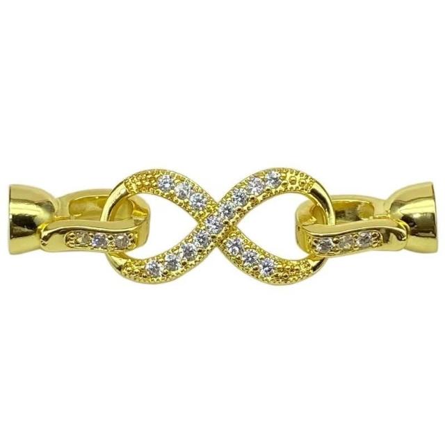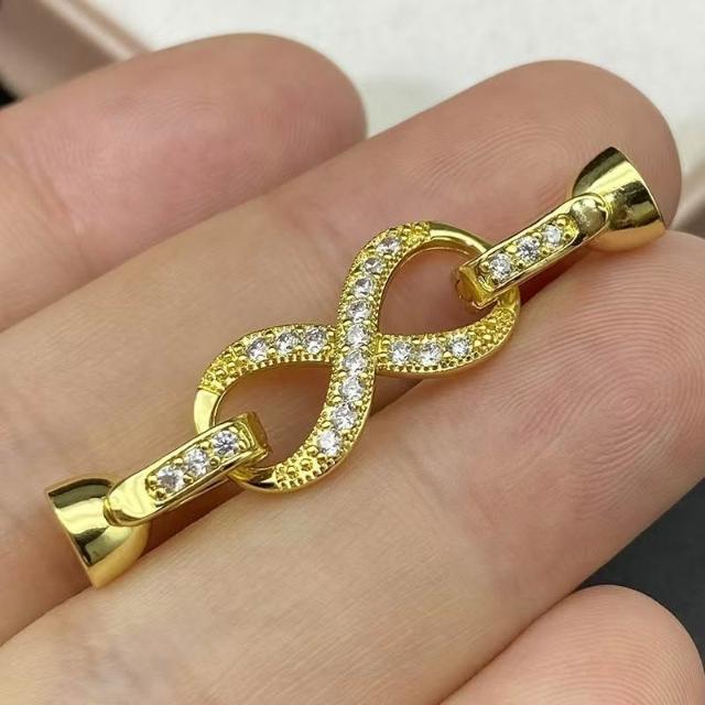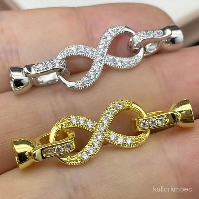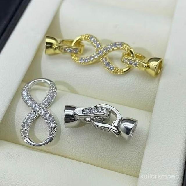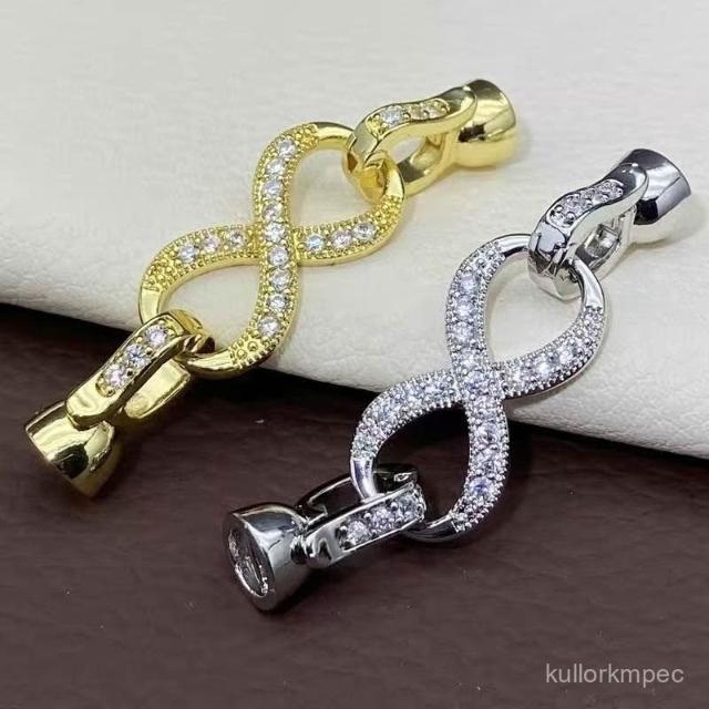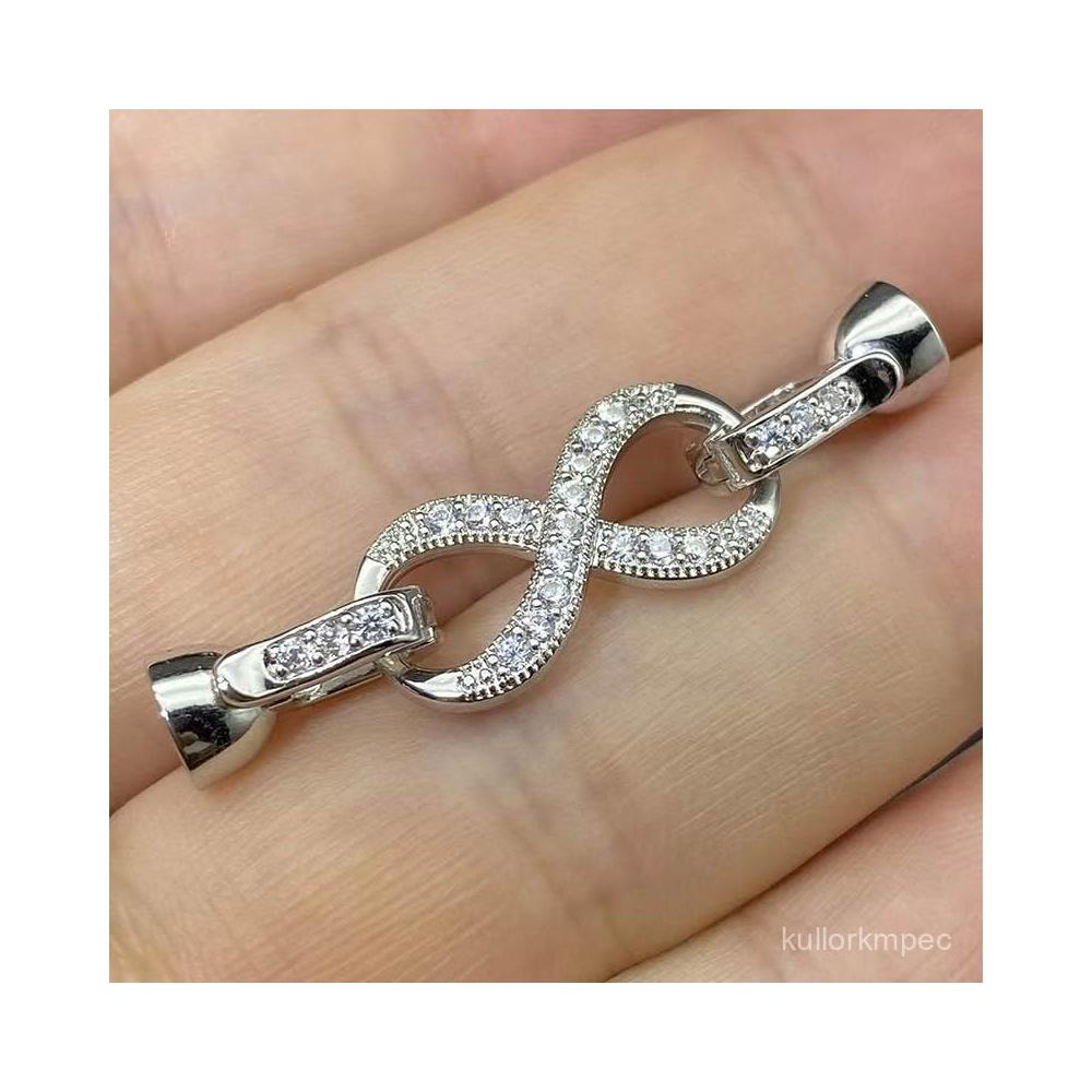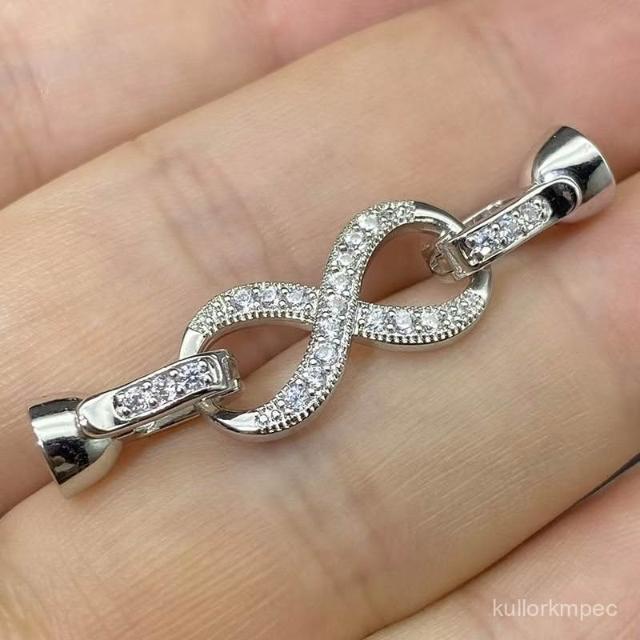 s925銀8字單排扣頭珍珠項鏈扣手鏈扣接頭微鑲鋯石8字扣diy配件