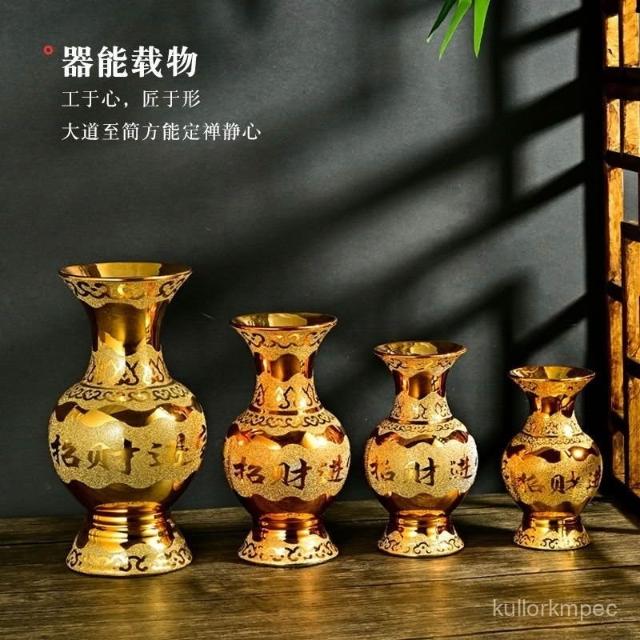 供佛鈦金花瓶家居佛堂陶瓷花瓶適用佛前蓮花瓶財神觀音凈水瓶擺件