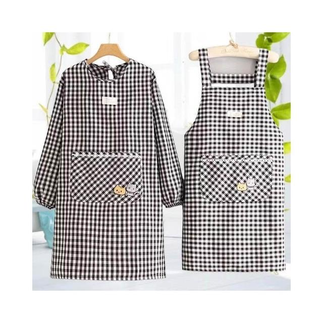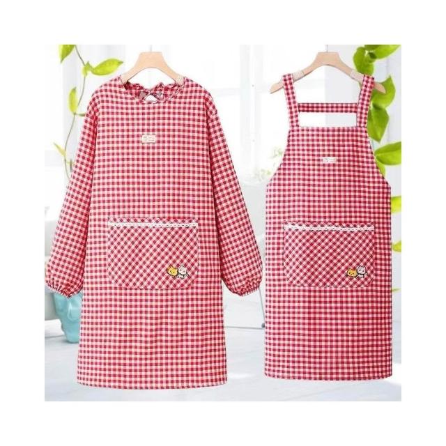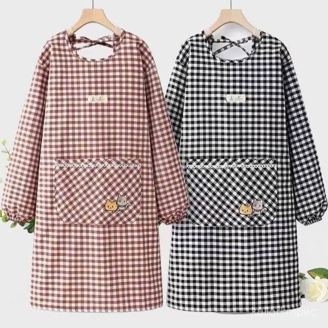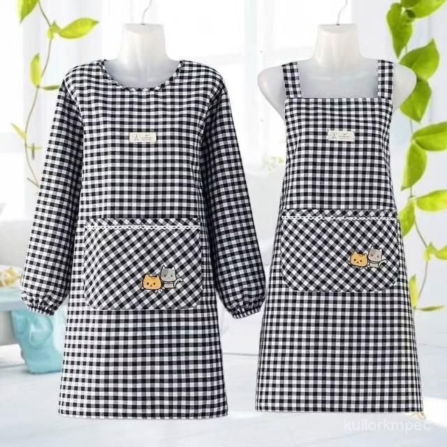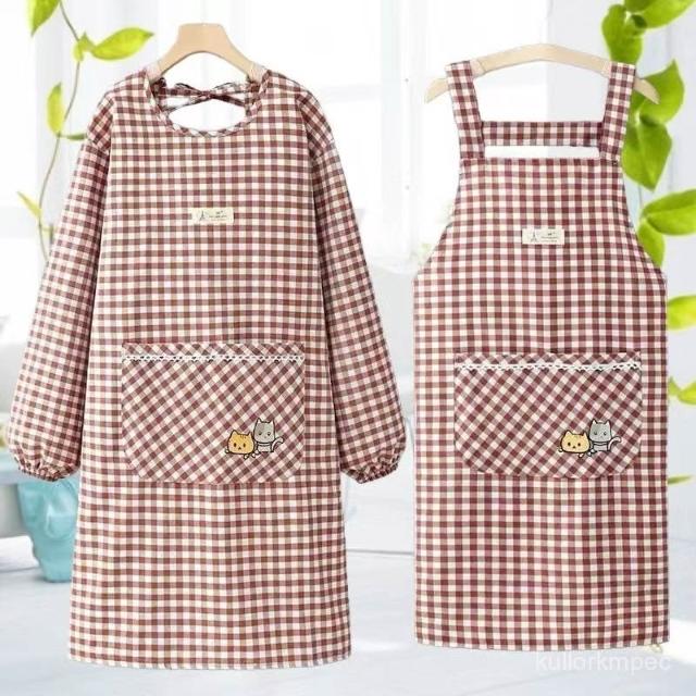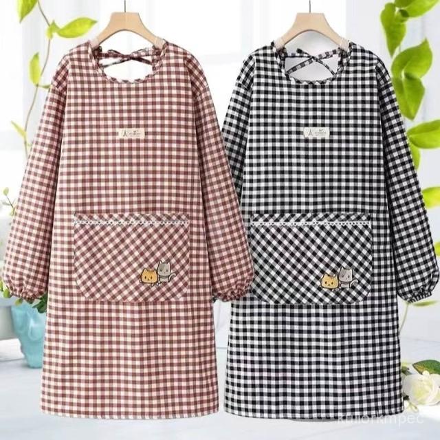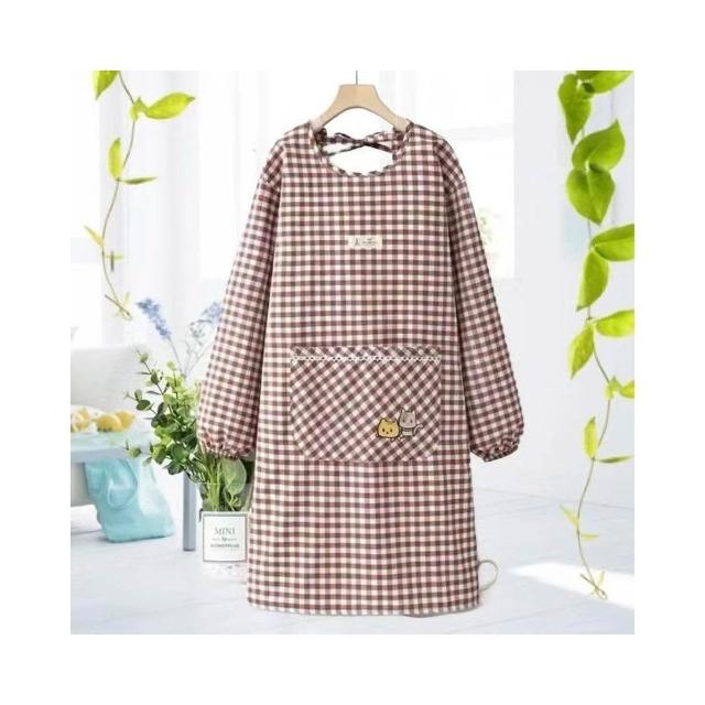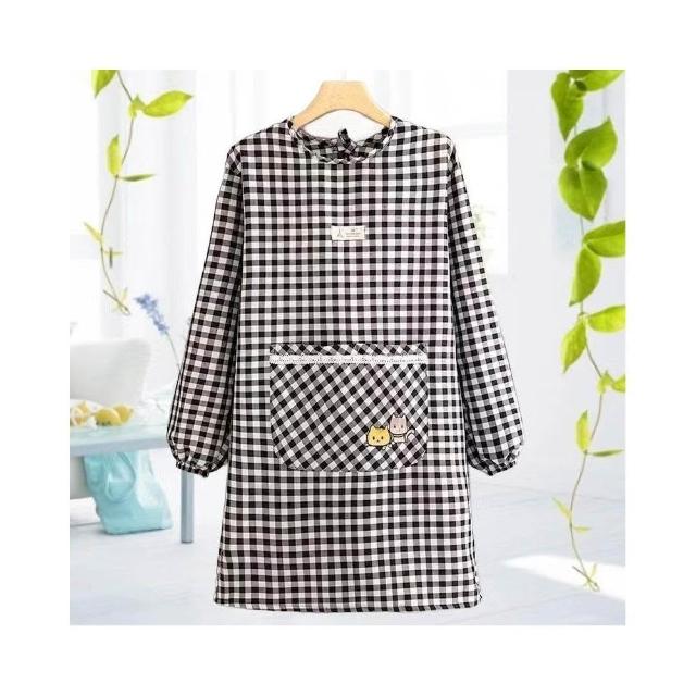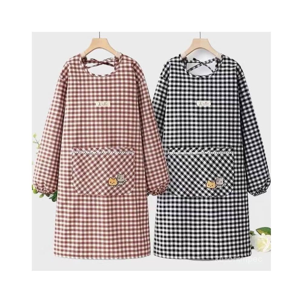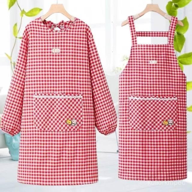 棉布圍裙長袖廚房新款韓版時尚做飯防汙家用防油罩衣透氣工00