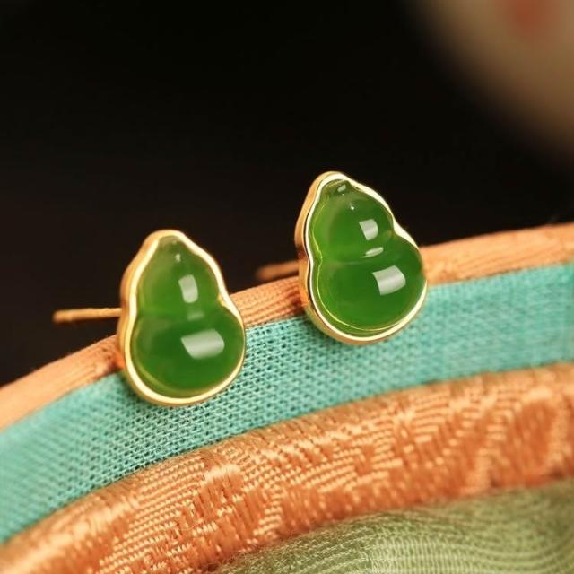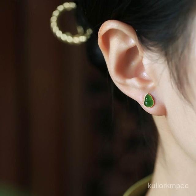 新中式國風陽綠小福祿耳釘女vintage輕奢小衆設計耳環高級感耳飾