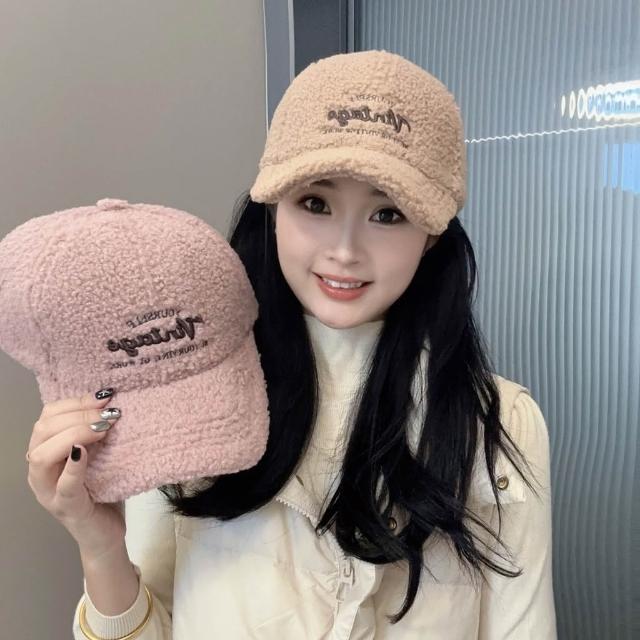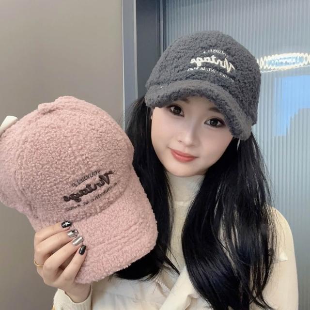 Fortune🥇新款字母羊羔絨多色鴨舌帽百搭毛絨保暖加絨加厚秋冬 保暖帽子 秋冬帽子 防風 防寒帽 帽子
