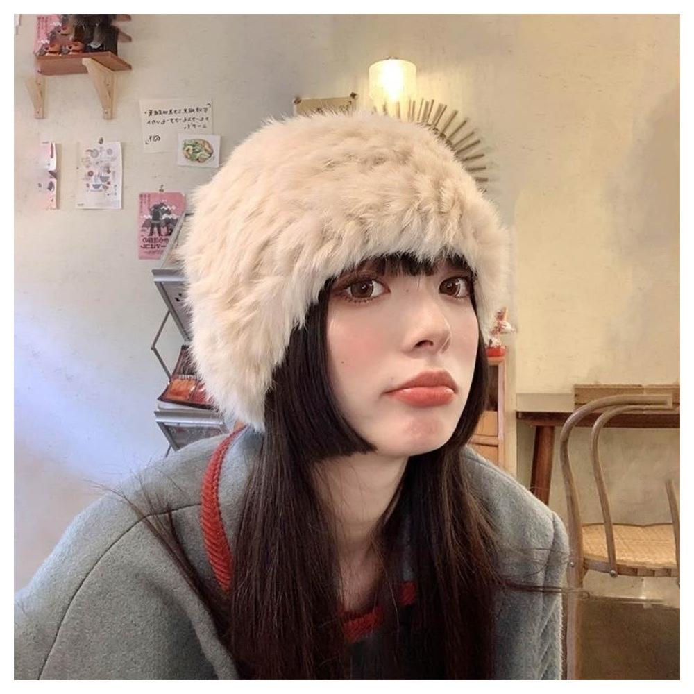Fortune毛線帽女🌈加厚保暖真兔毛絨皮草一體編織帽子女冬季防寒百搭針織包頭毛綫帽 4QCW