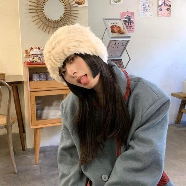 Fortune毛線帽女🌈加厚保暖真兔毛絨皮草一體編織帽子女冬季防寒百搭針織包頭毛綫帽 4QCW