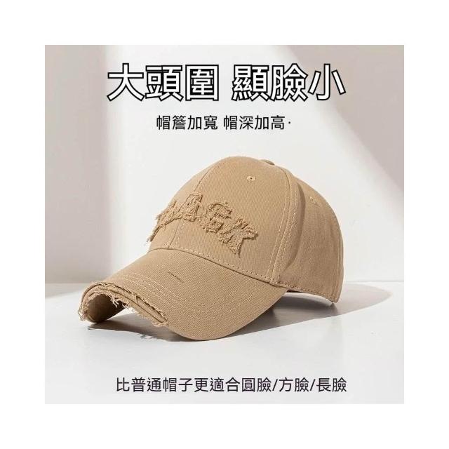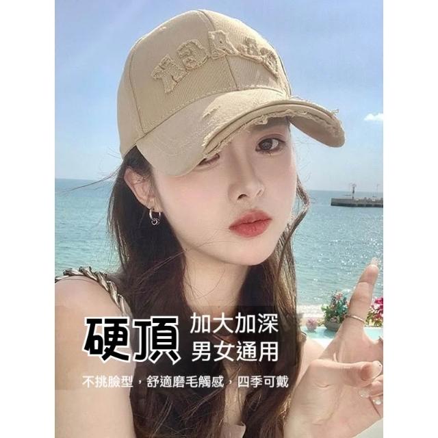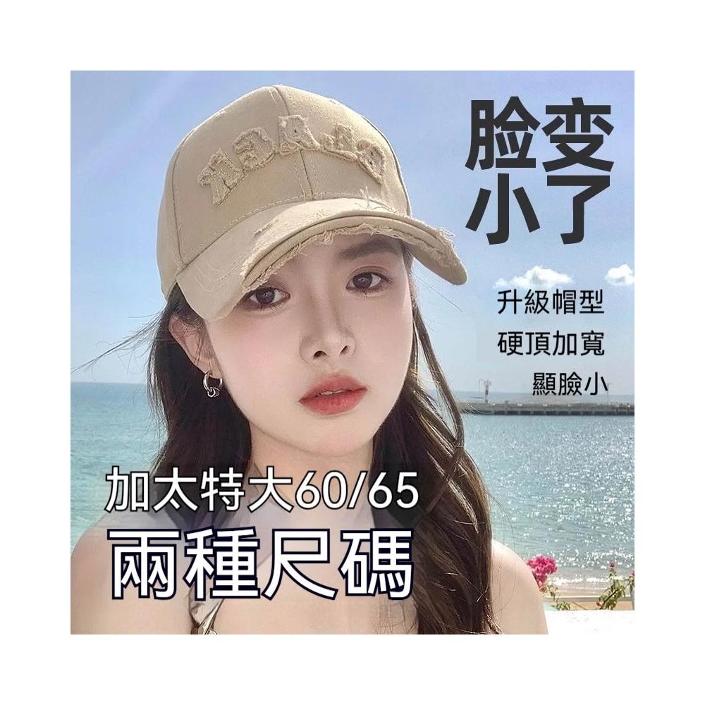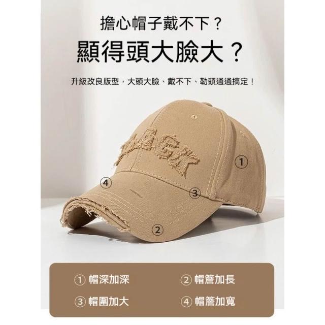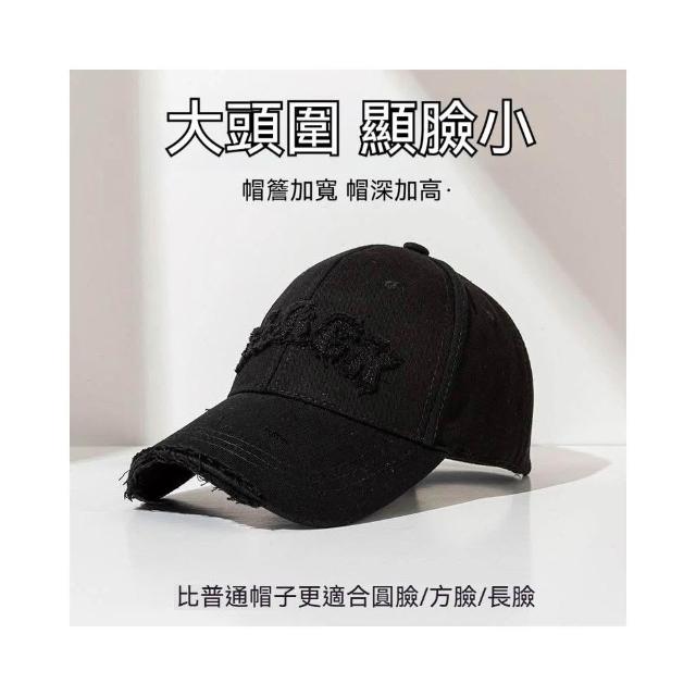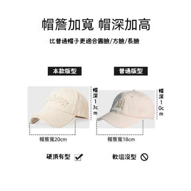 Fortune🌈硬頂棒球帽女 破洞做舊加大加深大頭圍顯臉小加寬大帽簷鴨舌帽子男水洗刺繡復古棒球帽刺繡字母街舞帽學生
