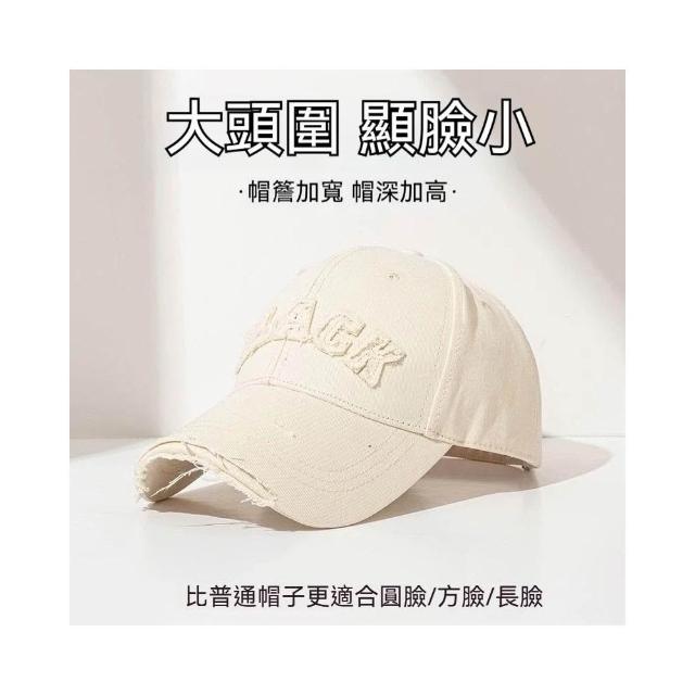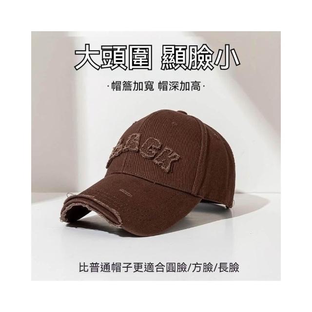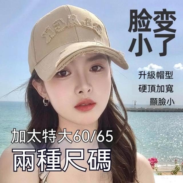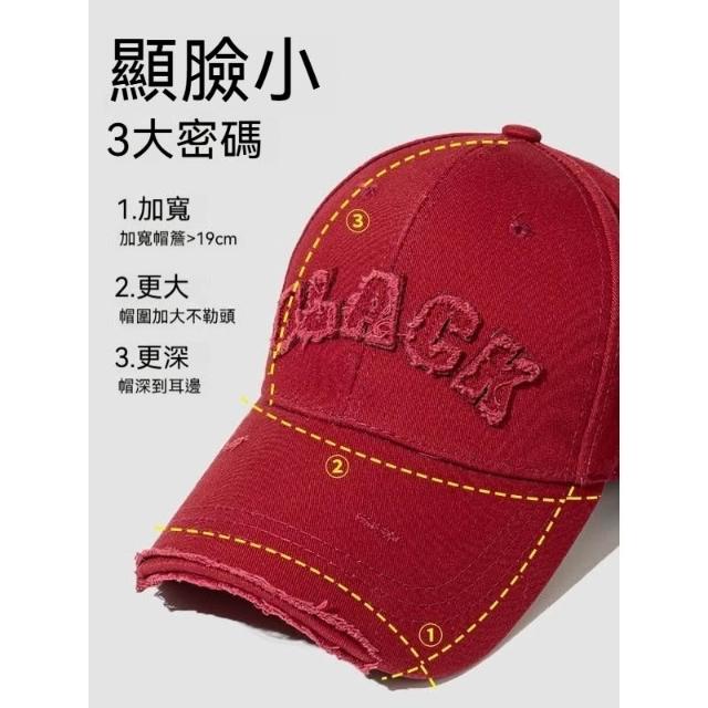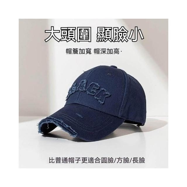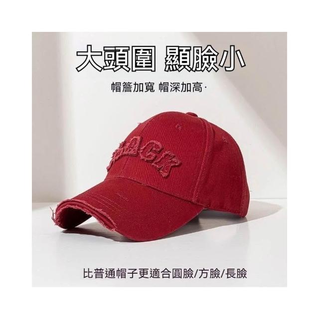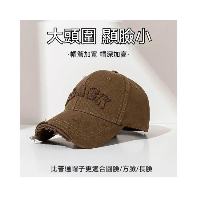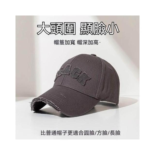 Fortune🌈硬頂棒球帽女 破洞做舊加大加深大頭圍顯臉小加寬大帽簷鴨舌帽子男水洗刺繡復古棒球帽刺繡字母街舞帽學生