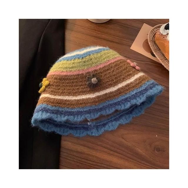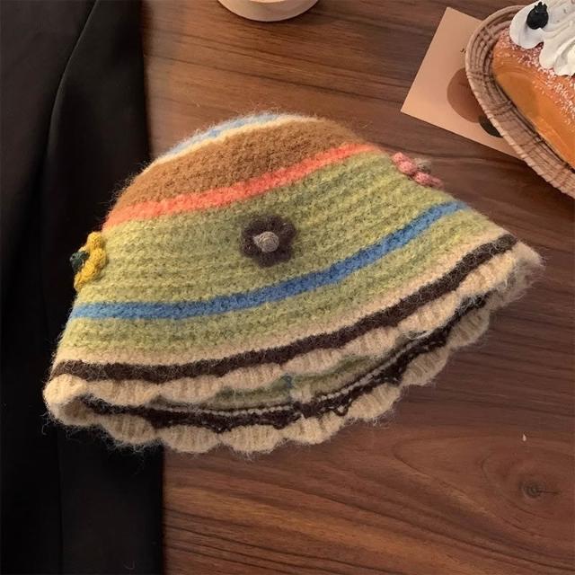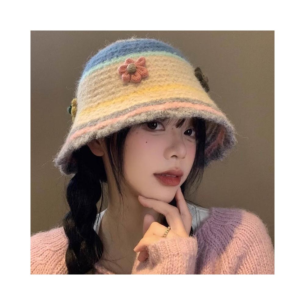 Fortune毛線帽女🌈毛綫帽女秋冬花朵手工針織漁夫帽季顯臉保暖毛綫甜美百搭編織帽子