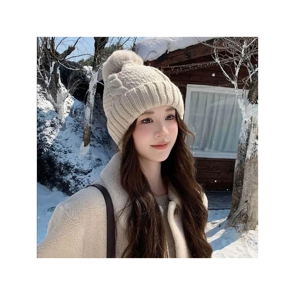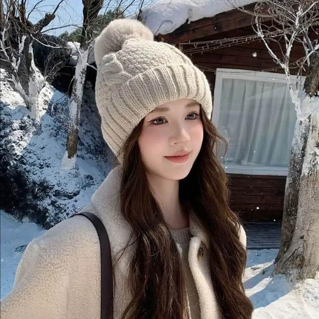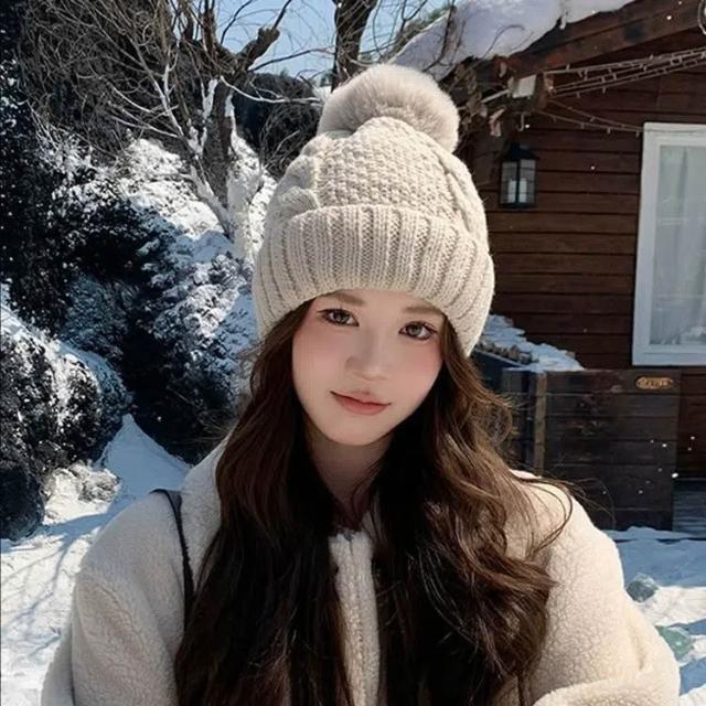 Fortune毛線帽女🌈加絨毛綫帽女款冬季保暖加厚百搭冷帽防風麻花針織帽護耳學生帽子 FFGA
