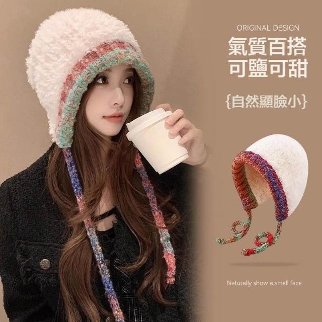 Fortune毛絨針織帽子女大頭圍包頭帽毛線帽冬天帽子保暖毛帽可愛毛帽 美式毛帽 遮耳毛帽 韓系 護耳帽