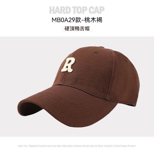 Fortune夏季新款🎁加寬簷複古棒球帽子女潮流ins時尚百搭顯臉小R字母刺繡學生鴨舌帽 大頭圍遮陽防曬抗紫外線棒球帽