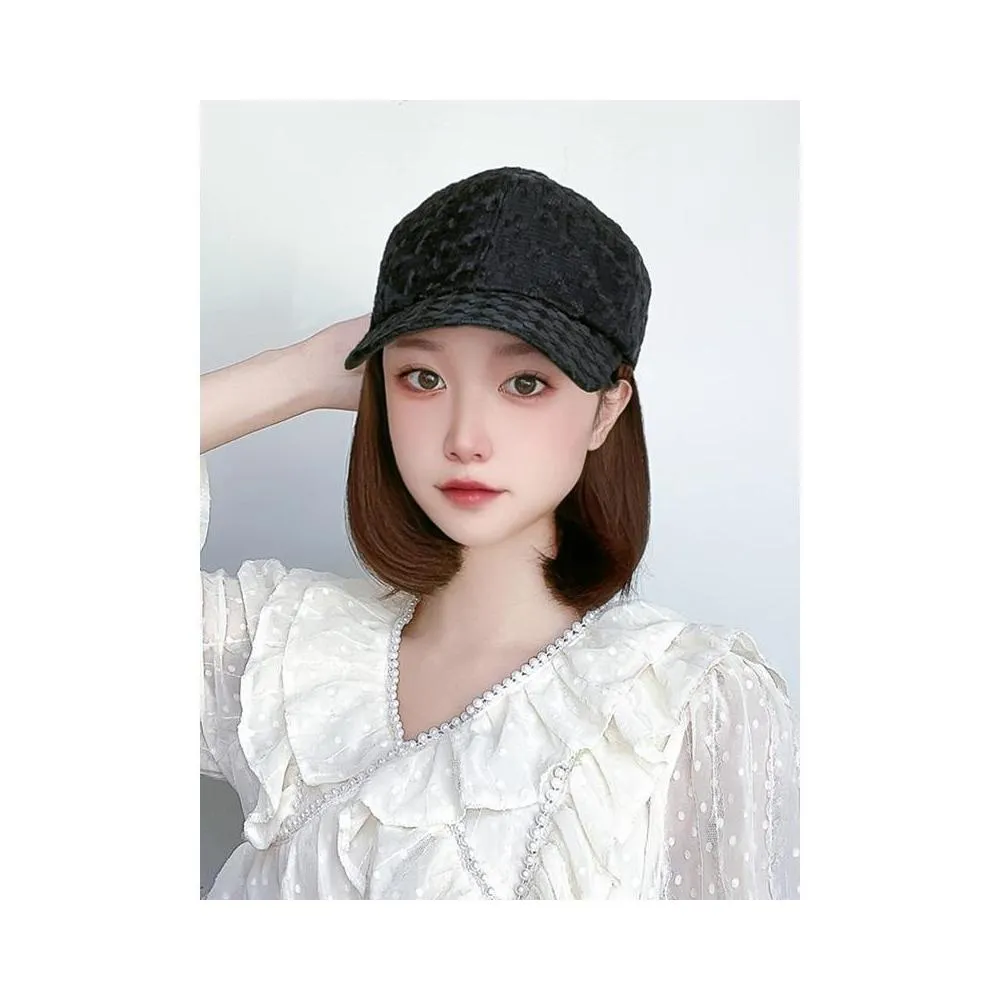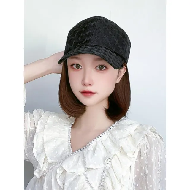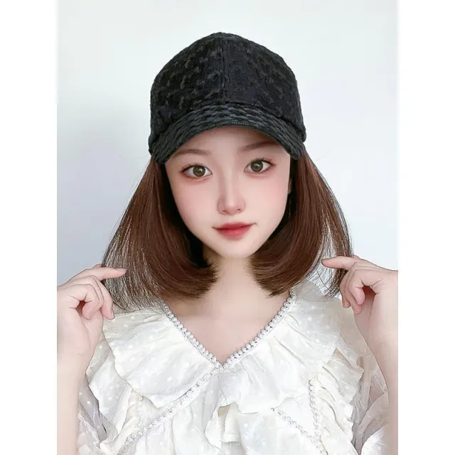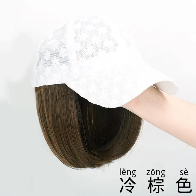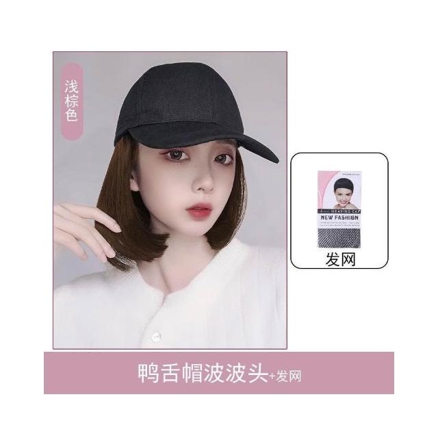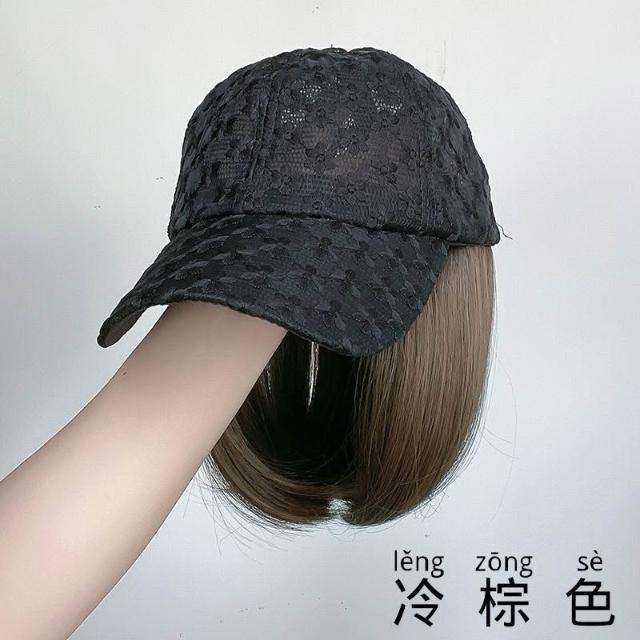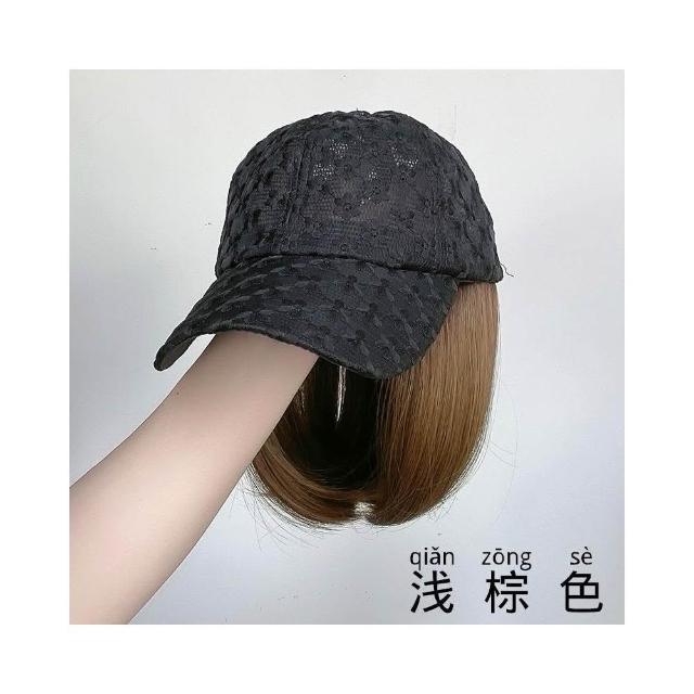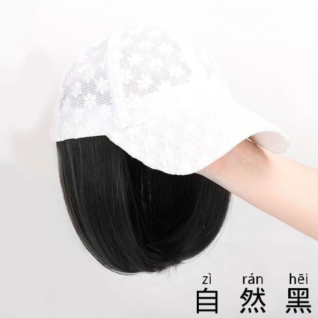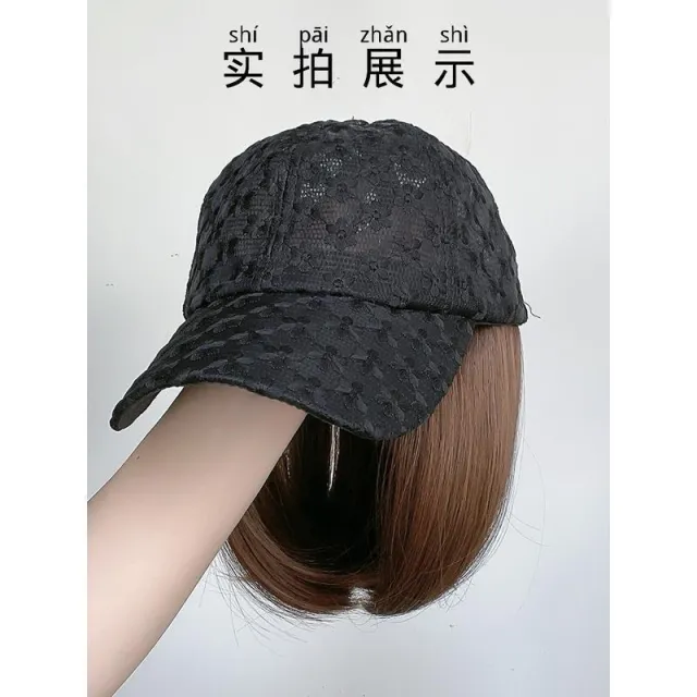 Fortune帽子女假髮女夏季假髮帽子一件式鏤空鴨舌帽短直髮時尚波波頭全頭套假髮遮陽防晒帽假髮帽子假髮一件式女