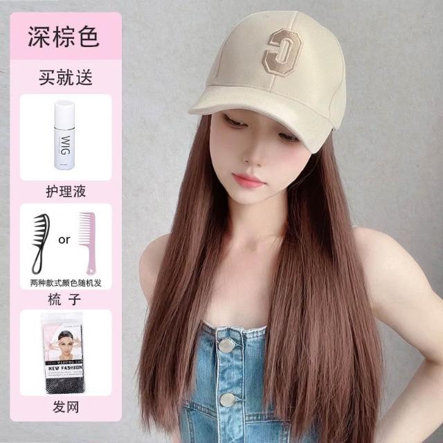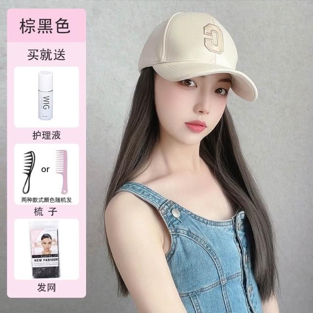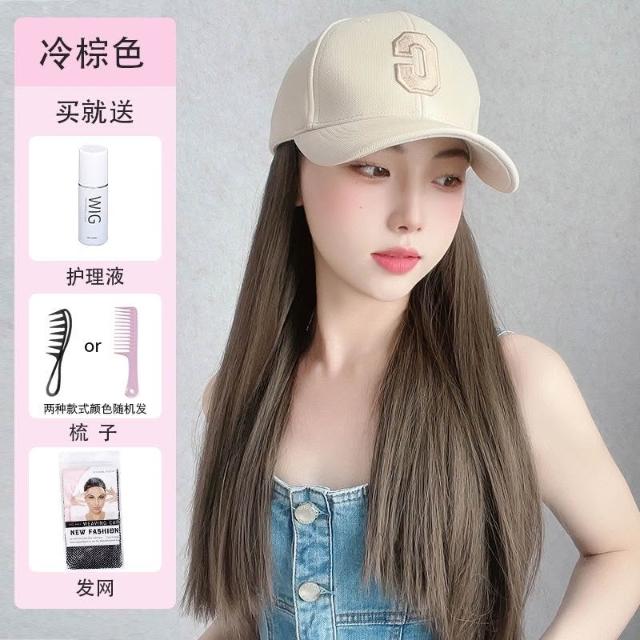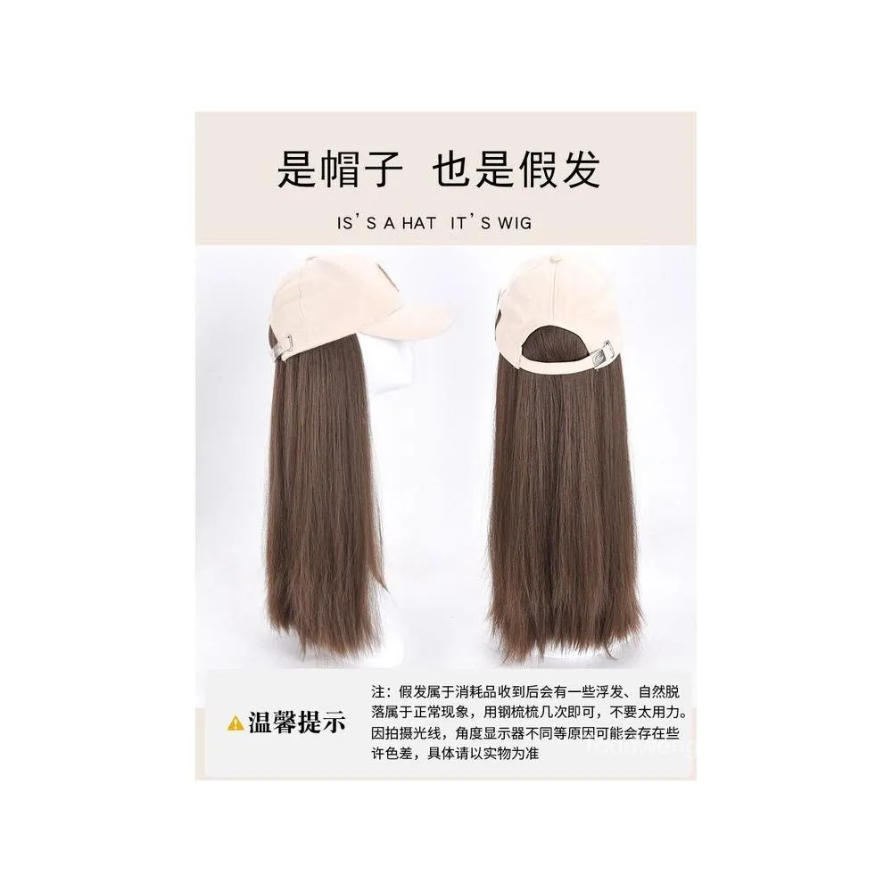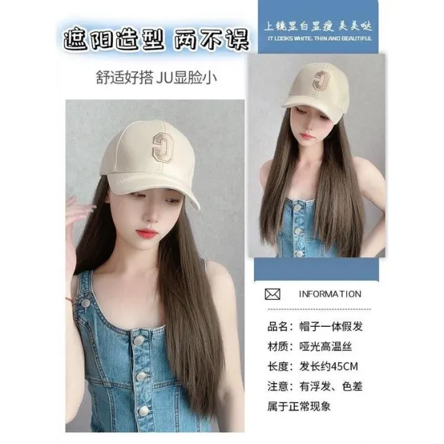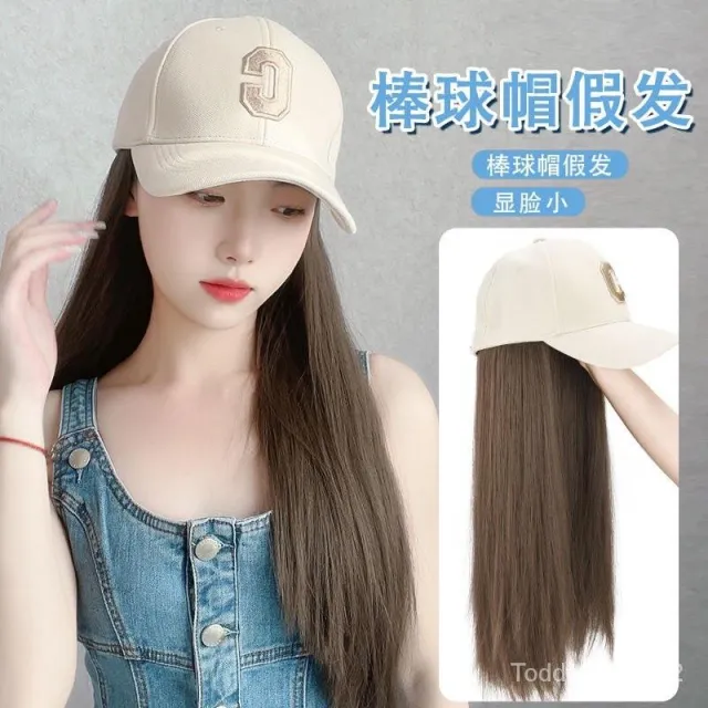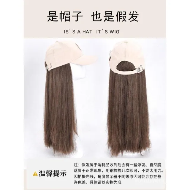 Fortune 帽子假髮女長髮一件式新款時尚百搭遮陽鴨舌帽長直髮全頭套式假髮帽