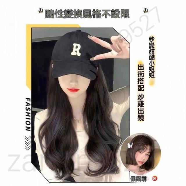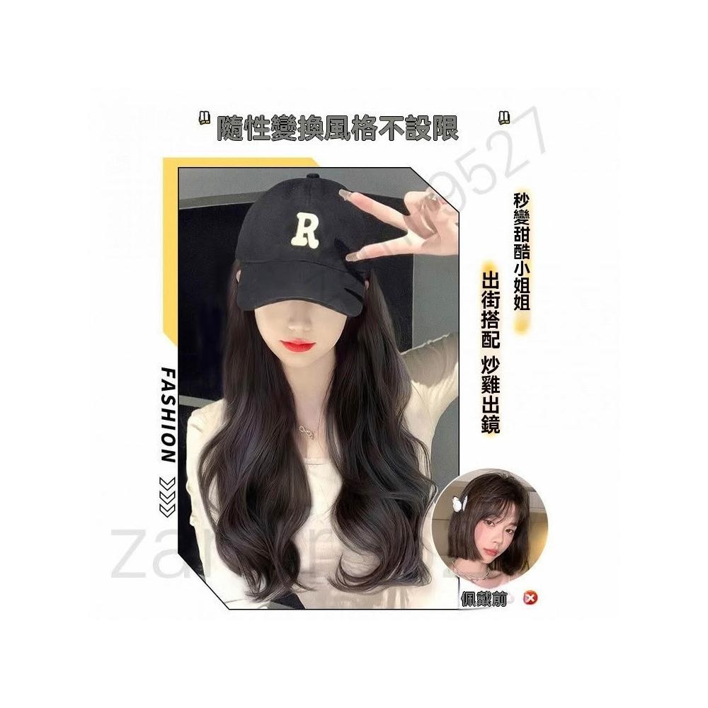 Fortune 帽子假髮一件式女長髮 仿真髮自然 鴨舌帽長捲髮 鴨舌帽假髮 棒球帽假髪 帽子假髮 假髮 假髮帽 仿真髮