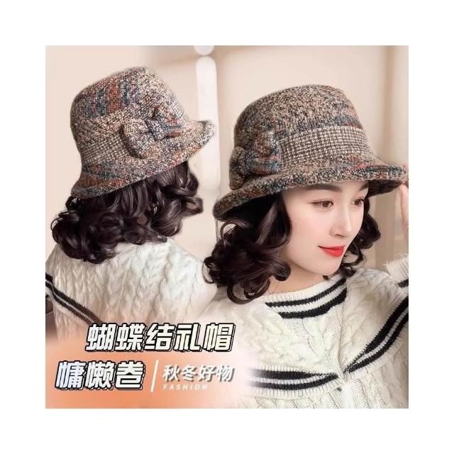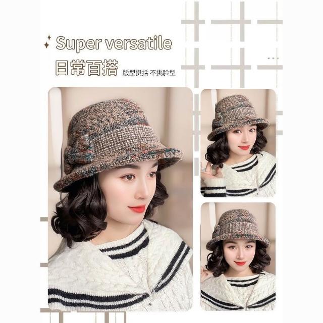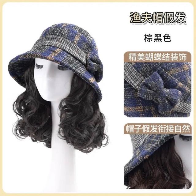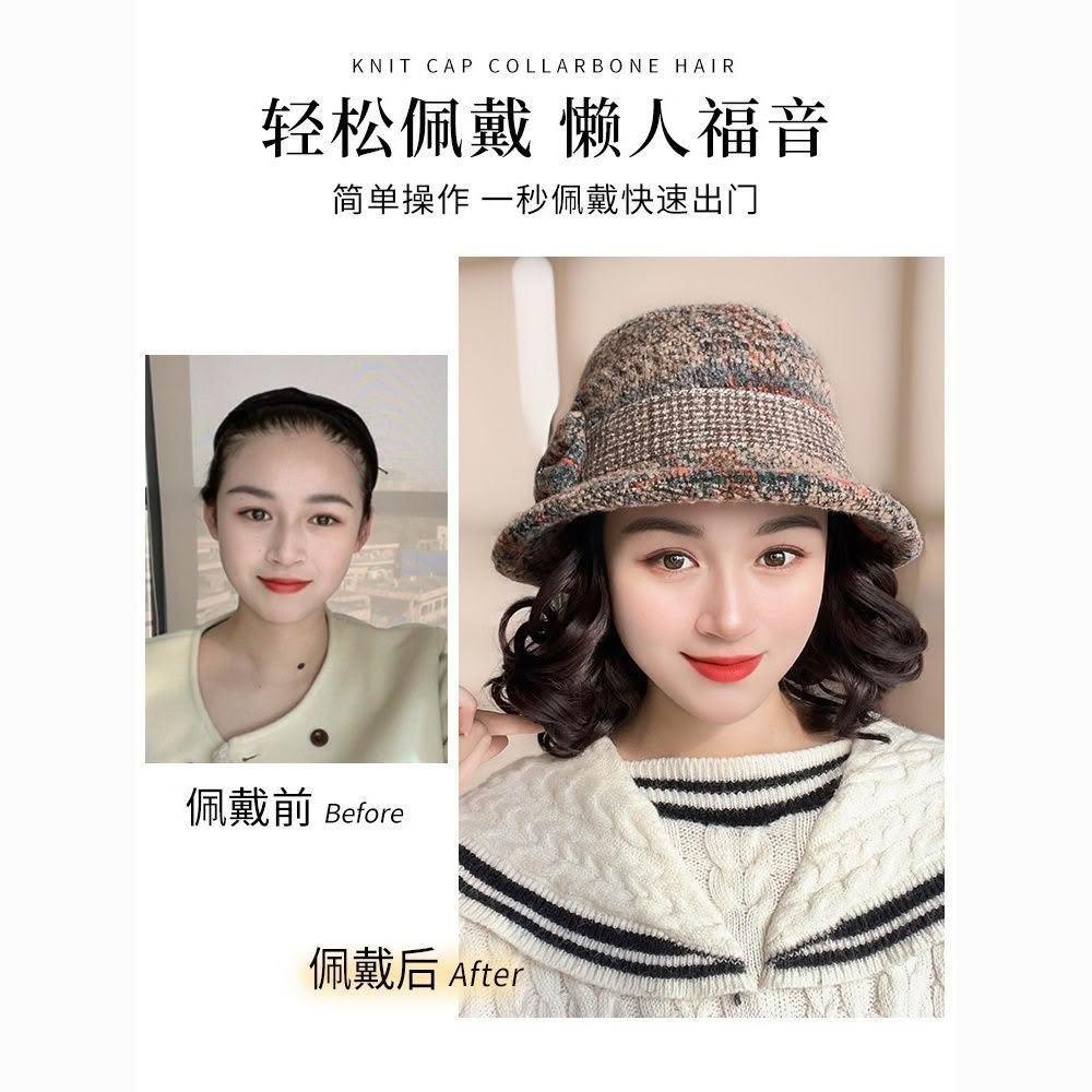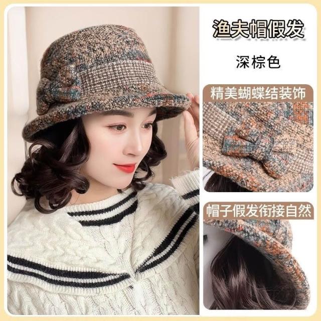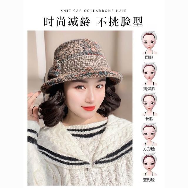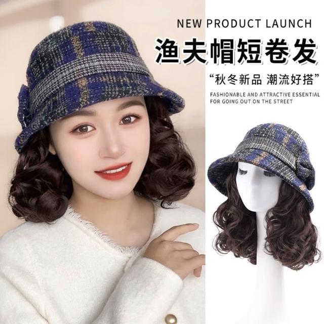 Fortune 帽子假髮一件式 假髮秋冬時尚帽子一件式 漁夫帽中老年媽媽百搭禮帽保暖捲髮頭套