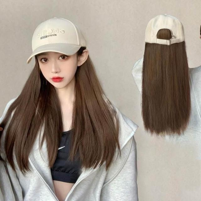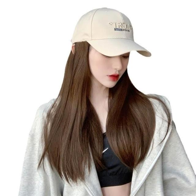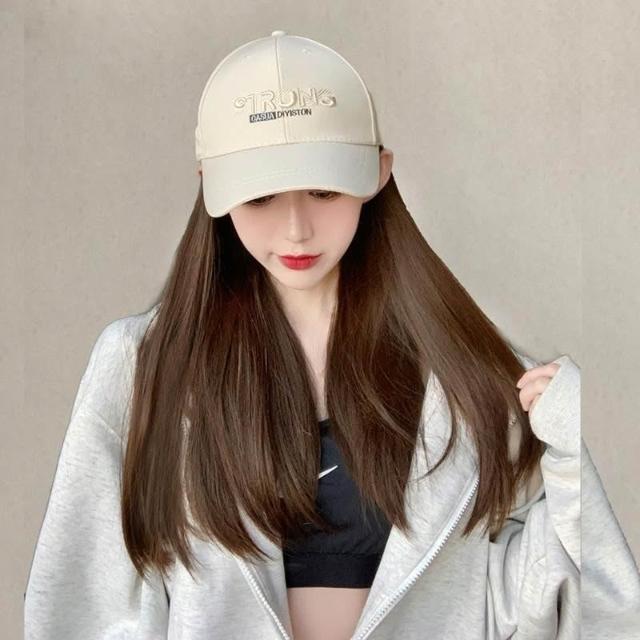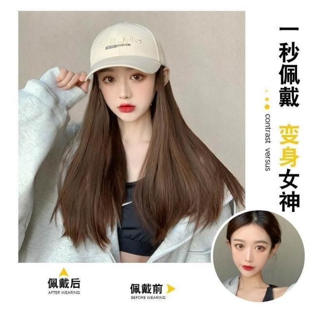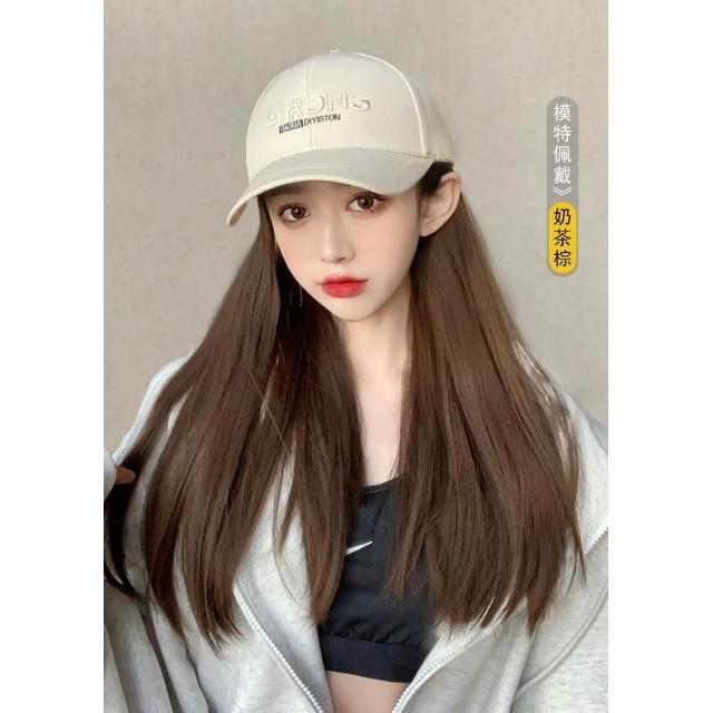 Fortune假髮女 長直髮假髮帽子一件式 夏季鴨舌帽長直髮一件式 韓版百搭全頭套式假髮