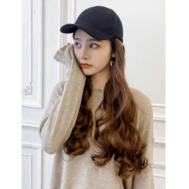 Fortune時尚帽子一件式假髮 自然逼真大波浪假發帽 長卷發鴨舌帽 連帽假髮