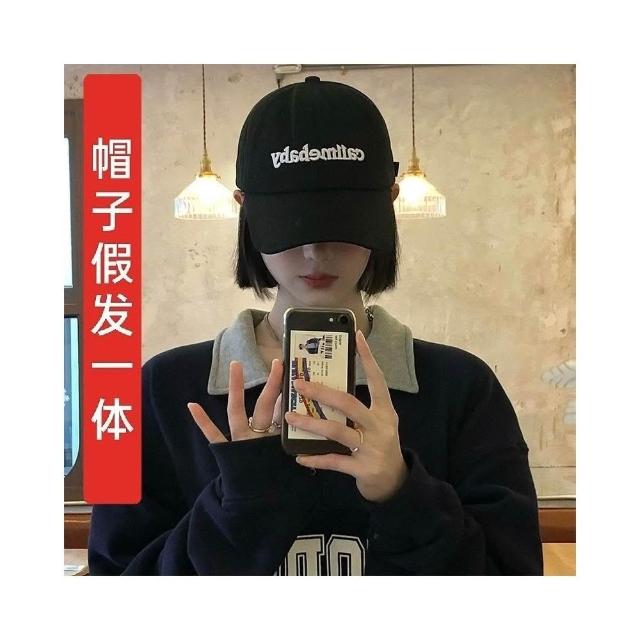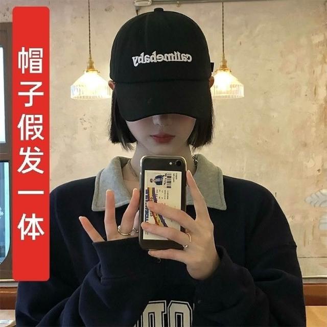 Fortune帽子假髮一件式 字母鴨舌帽假髮帽 百搭休閒短直法 一刀切假髮帽 棒球帽假髮帽