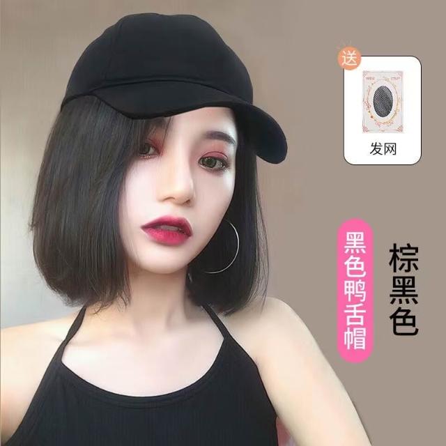 Fortune帽子假髮一體時尚短髮假髮女四季波波頭網紅新款全頭套式鴨舌帽