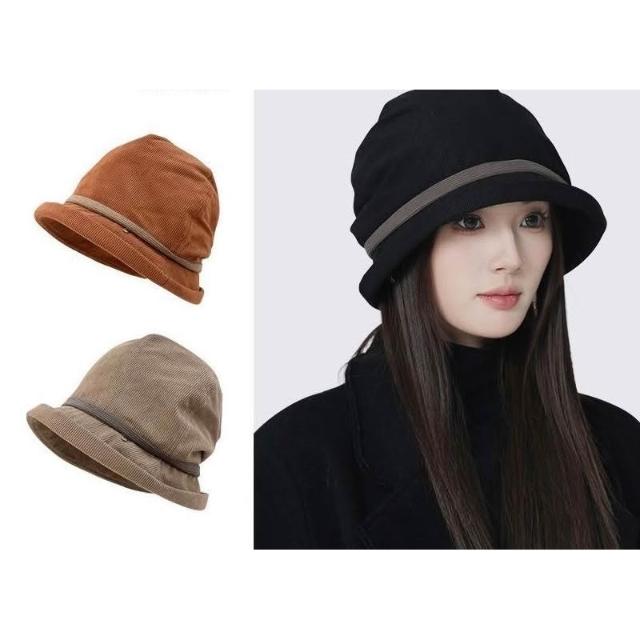 Fortune日本設計秋季燈芯絨漁夫帽子女秋冬休閒百搭堆堆帽保暖盆帽顯臉小