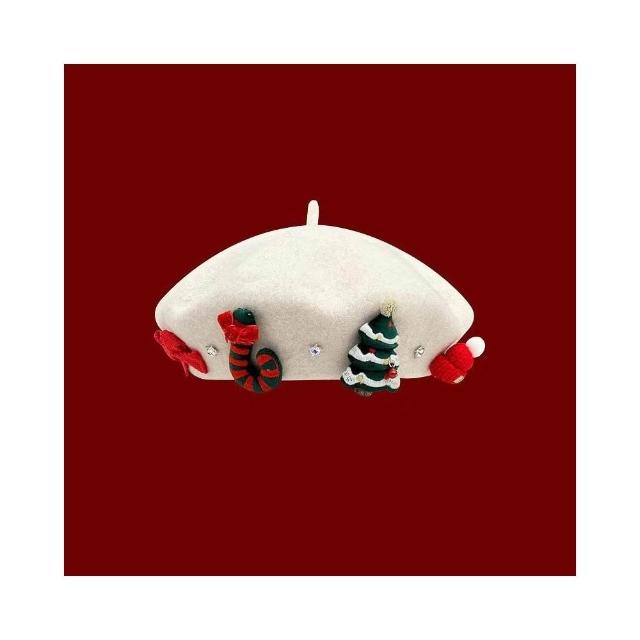 Fortune 日繫甜美紅色聖誕節羊毛呢貝雷帽子女冬季保暖百搭學生情侶畫家帽