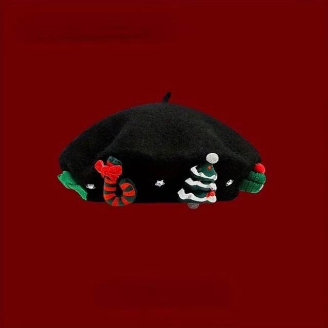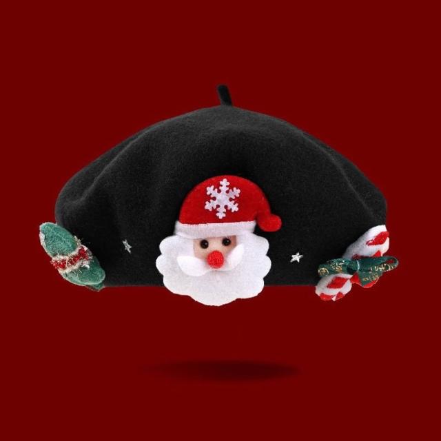 Fortune 日繫甜美紅色聖誕節羊毛呢貝雷帽子女冬季保暖百搭學生情侶畫家帽
