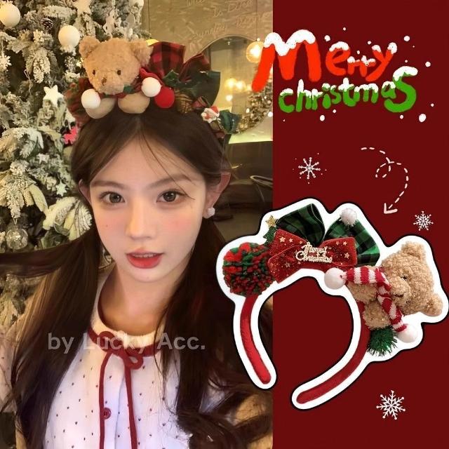 Fortune 聖誕甜心可愛新款頭箍小熊髮飾髮箍髮卡聖誕節裝扮飾品毛絨頭飾