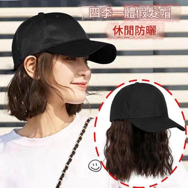 Fortune 帽子假髮一體女短髮潮流時尚修臉減齡女四季新款網紅棒球帽短捲髮