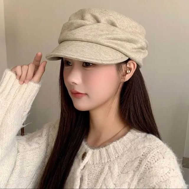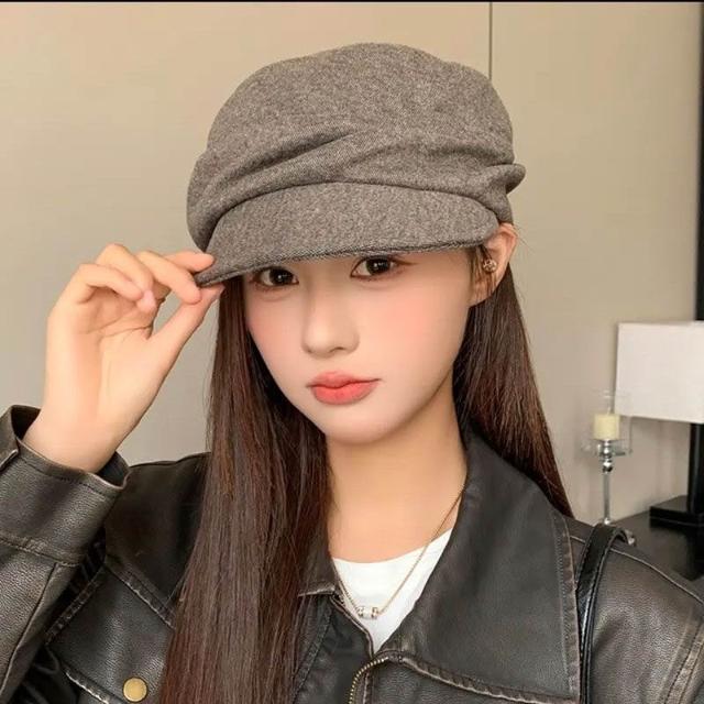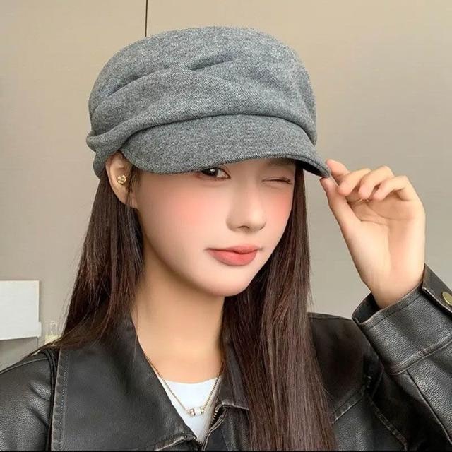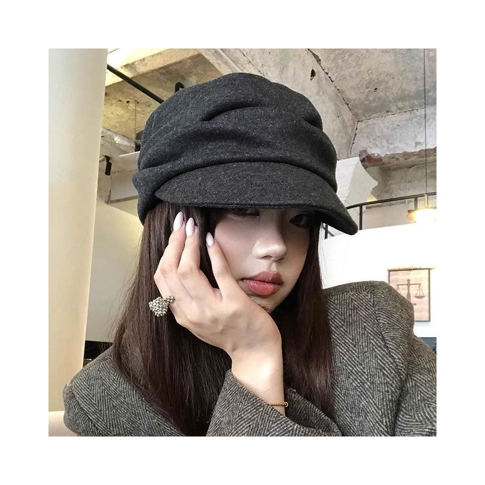 Fortune日繫山本風黑色褶皺貝雷帽女秋冬新款複古鴨舌報童帽子畫家帽