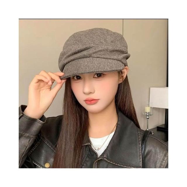 Fortune日繫山本風黑色褶皺貝雷帽女秋冬新款複古鴨舌報童帽子畫家帽