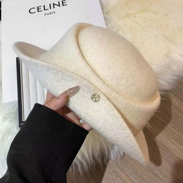 Fortune法式赫本風優雅黑色禮帽女秋冬複古顯臉小捲邊千金毛呢帽子漁夫帽