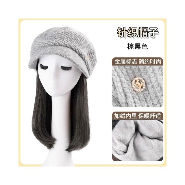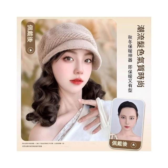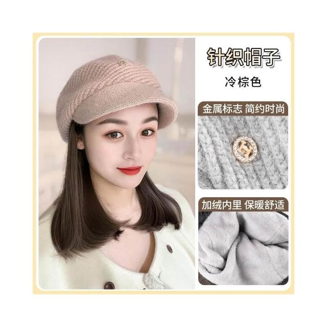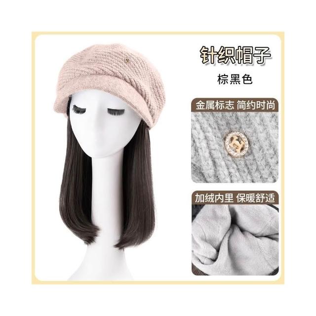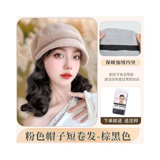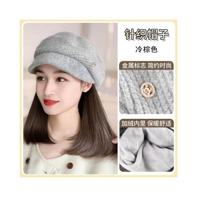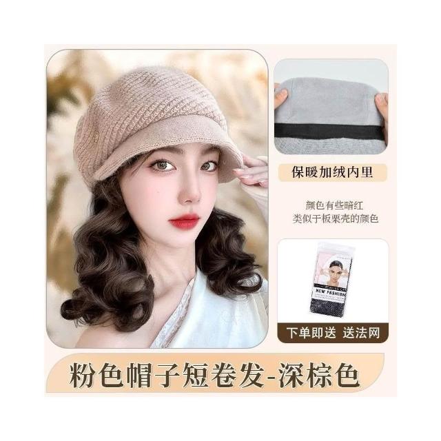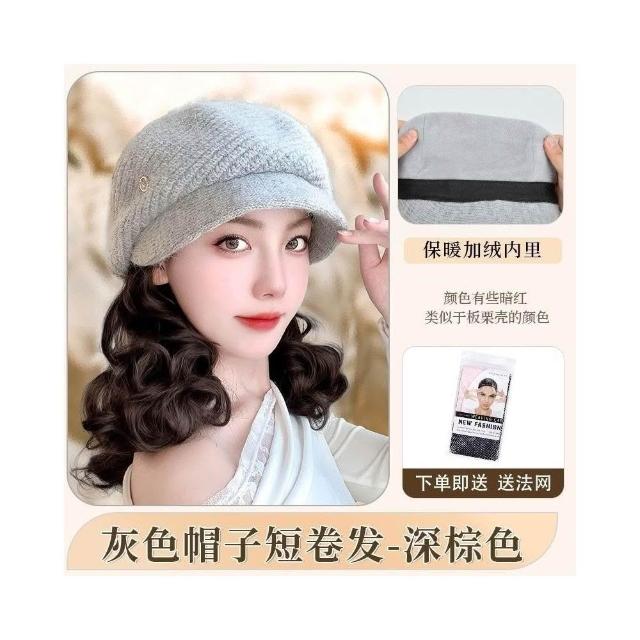 Fortune帽子假髮一體女時尚針織加絨貝雷帽短款梨花捲秋冬季假髮帽