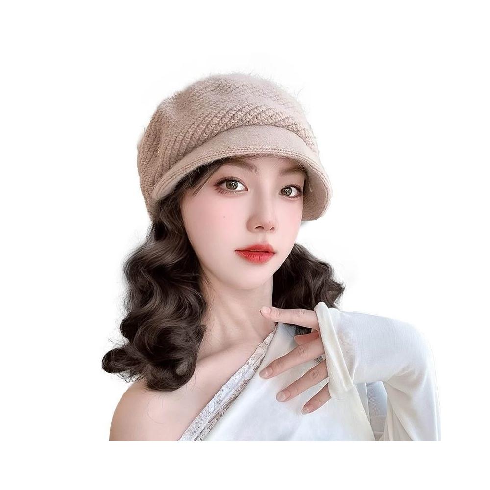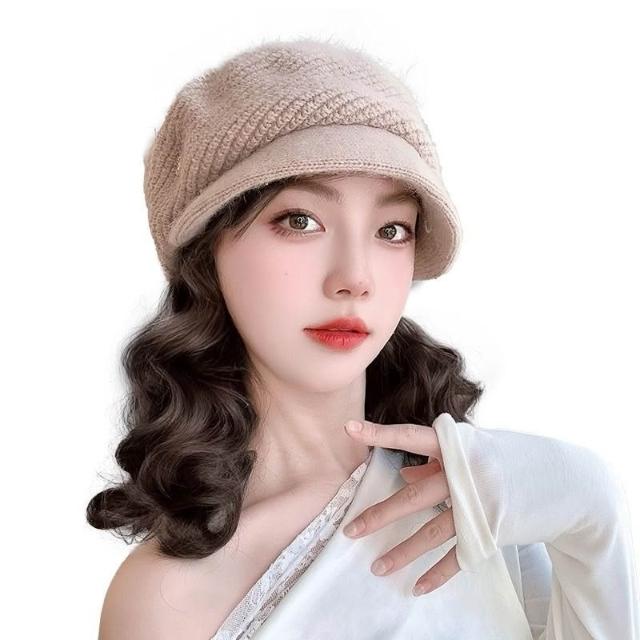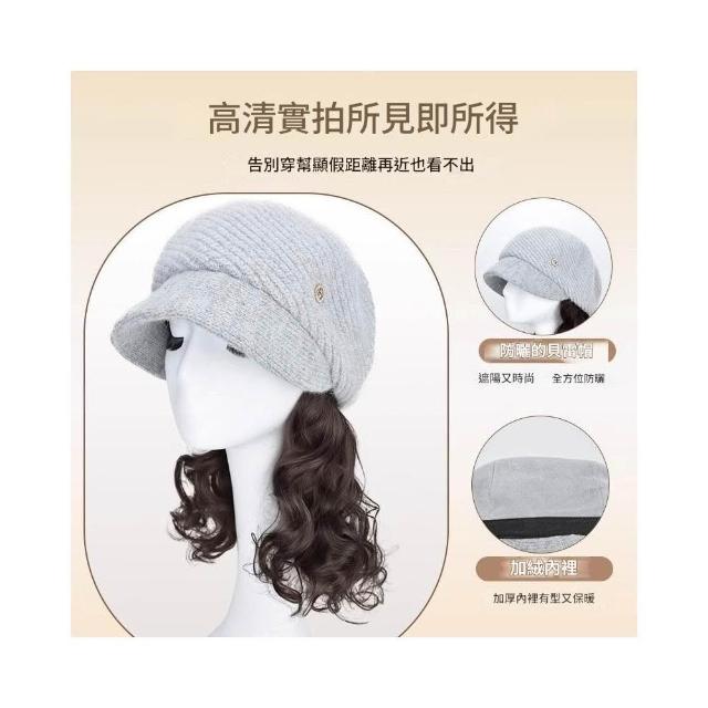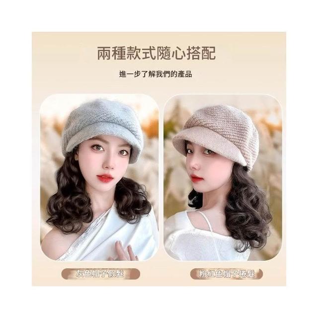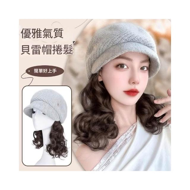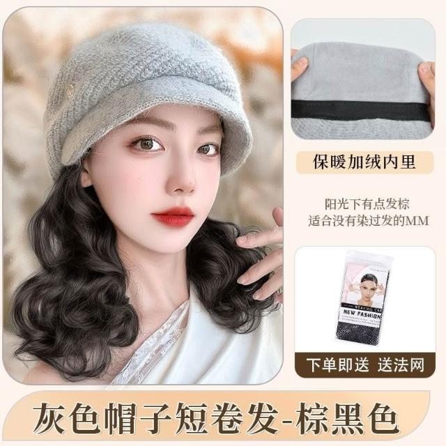 Fortune帽子假髮一體女時尚針織加絨貝雷帽短款梨花捲秋冬季假髮帽