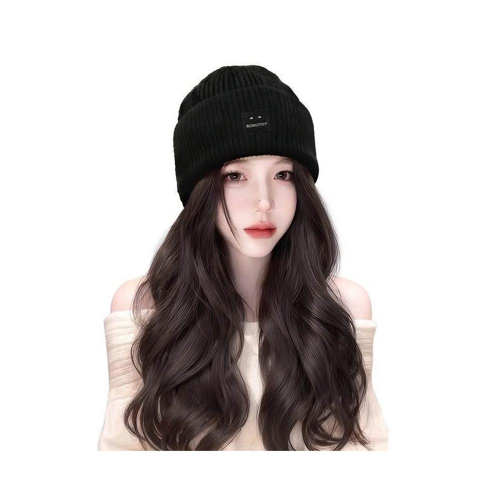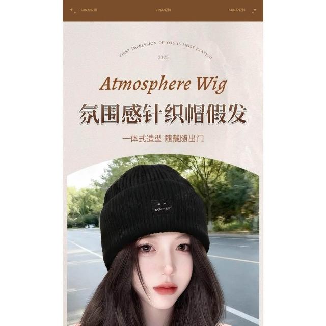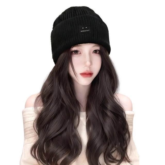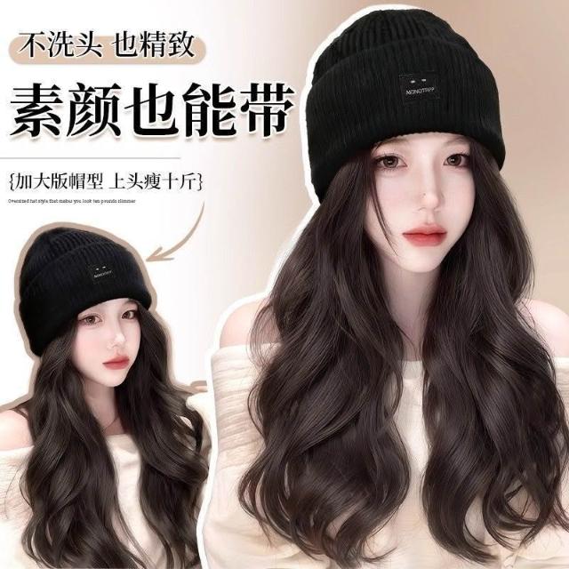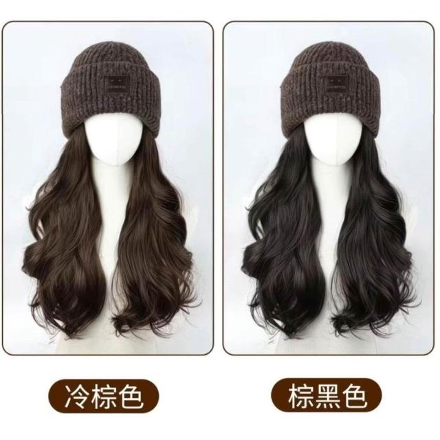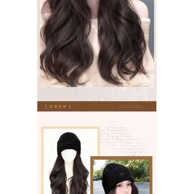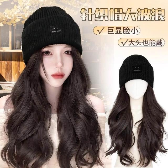 Fortune方標帽子假髮女新款毛線帽女秋冬一體式全頭套假髮帽防寒冷帽