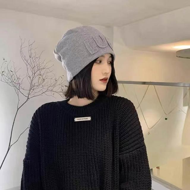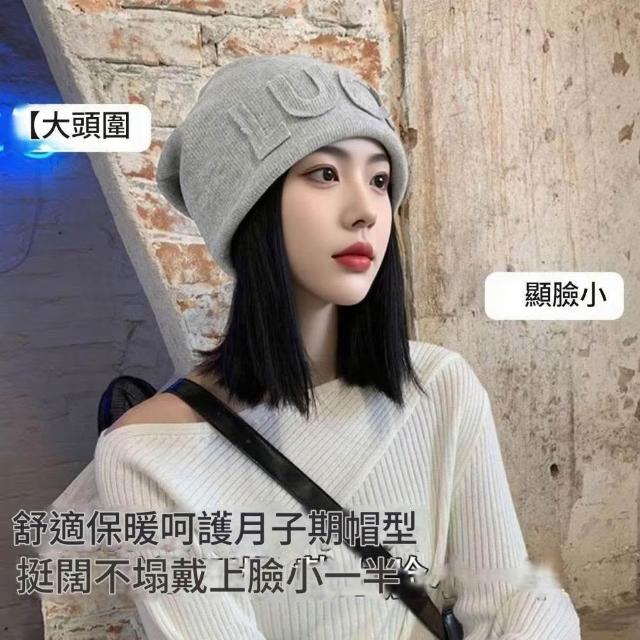 Fortune 2025秋冬新款帽子假髮一體女可拆卸齊肩短髮字母針織堆堆帽假髮帽