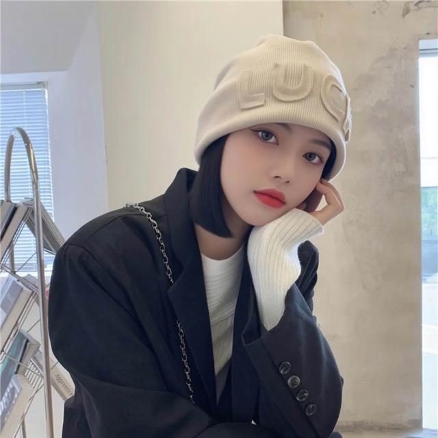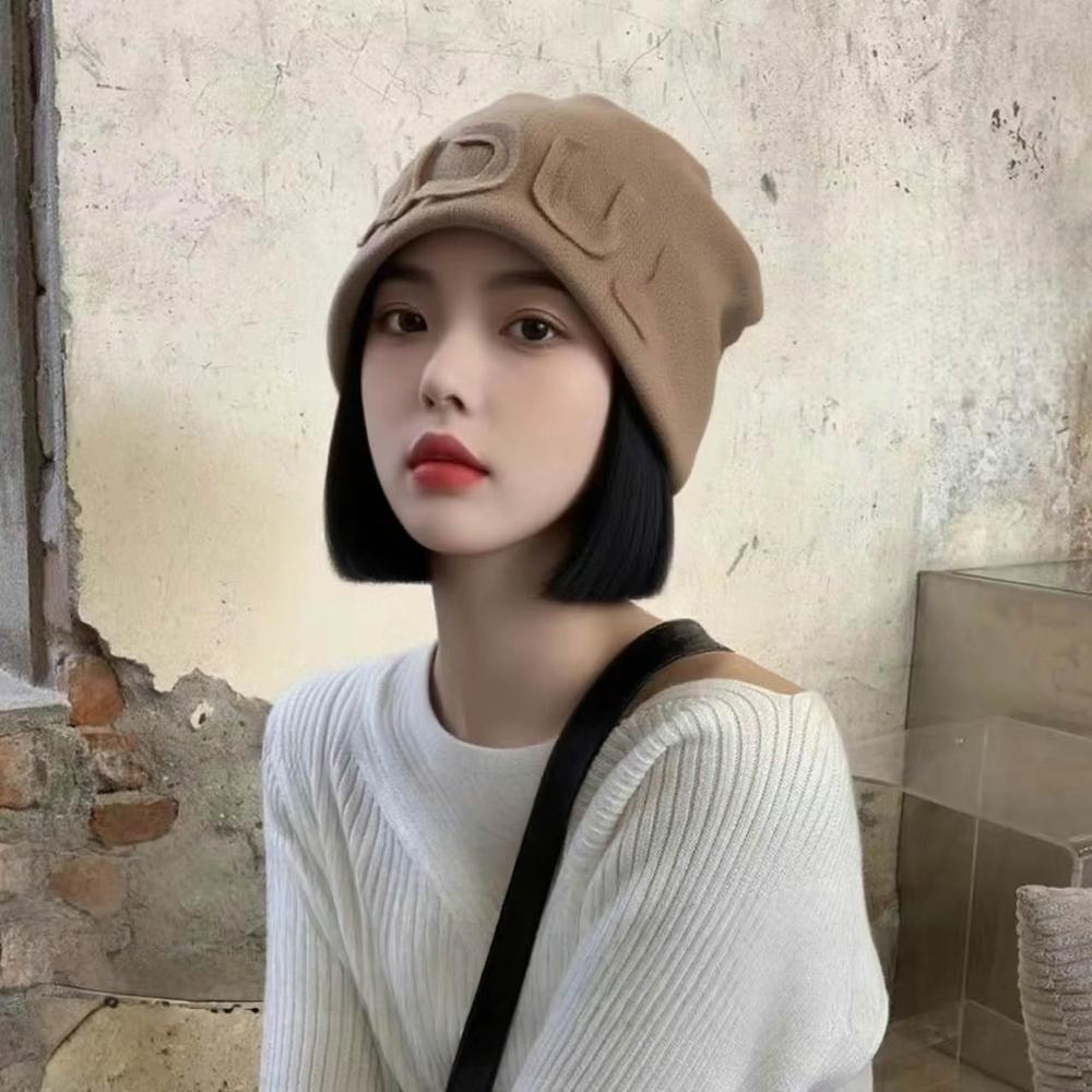 Fortune 2025秋冬新款帽子假髮一體女可拆卸齊肩短髮字母針織堆堆帽假髮帽
