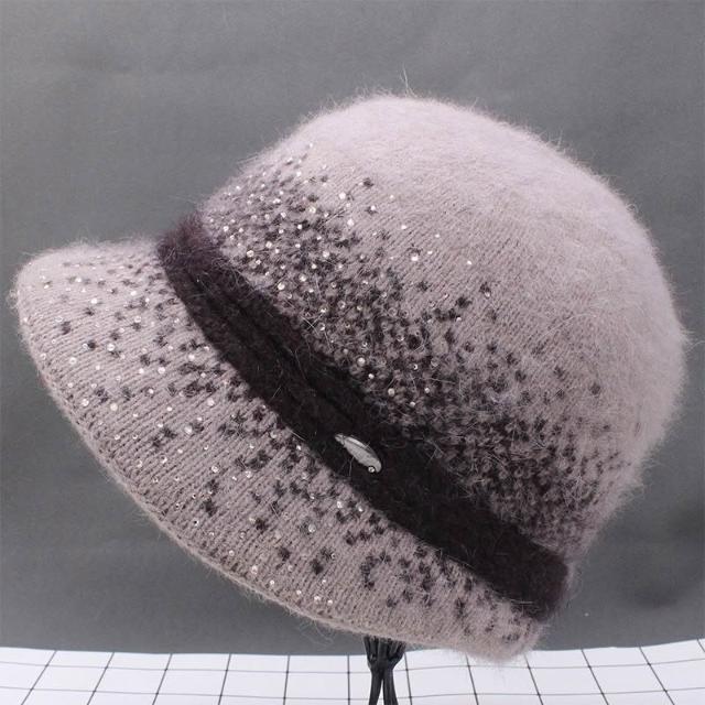 Fortune中老年帽子女媽媽兔毛線帽冬天加絨加厚加寬奶奶老太太針織保暖帽
