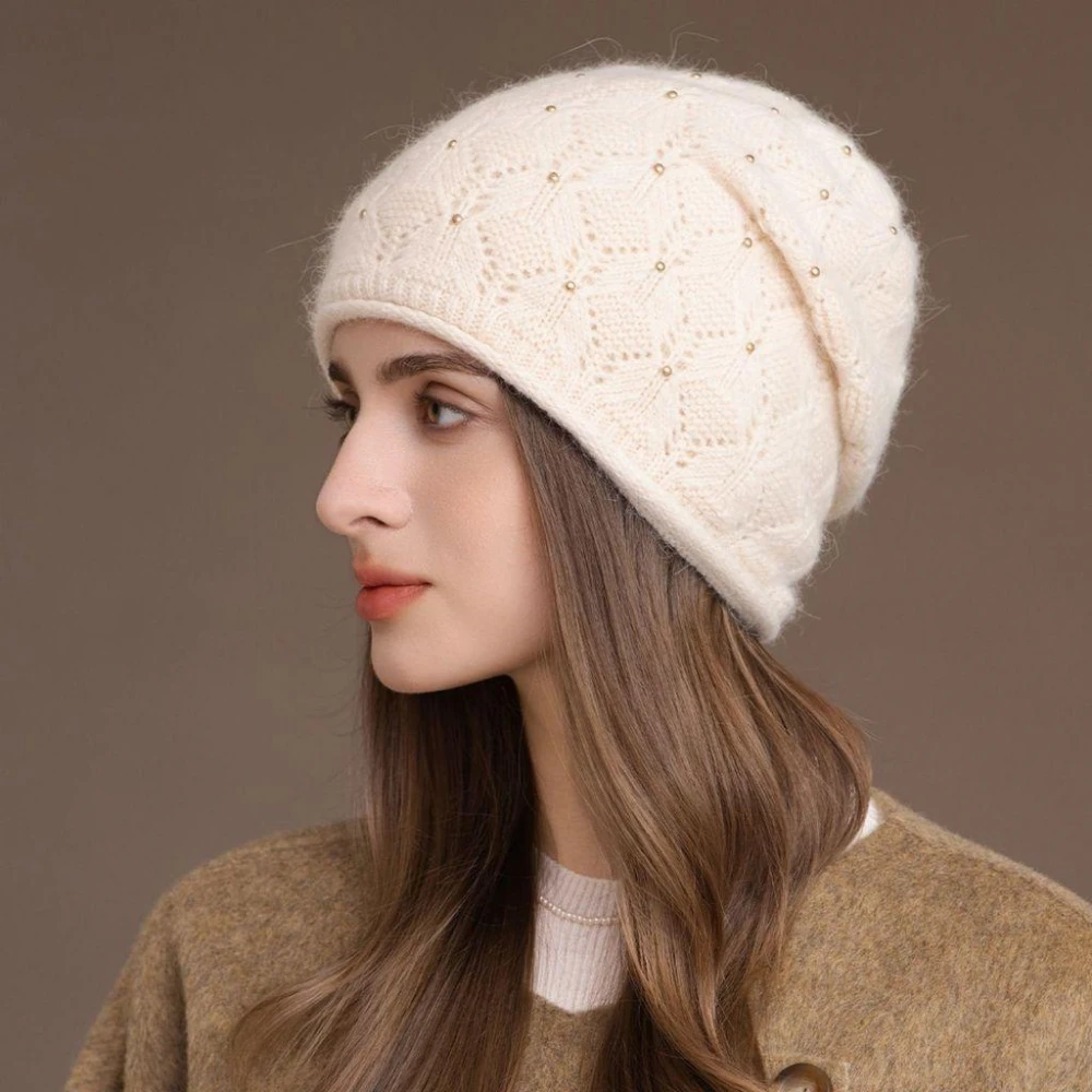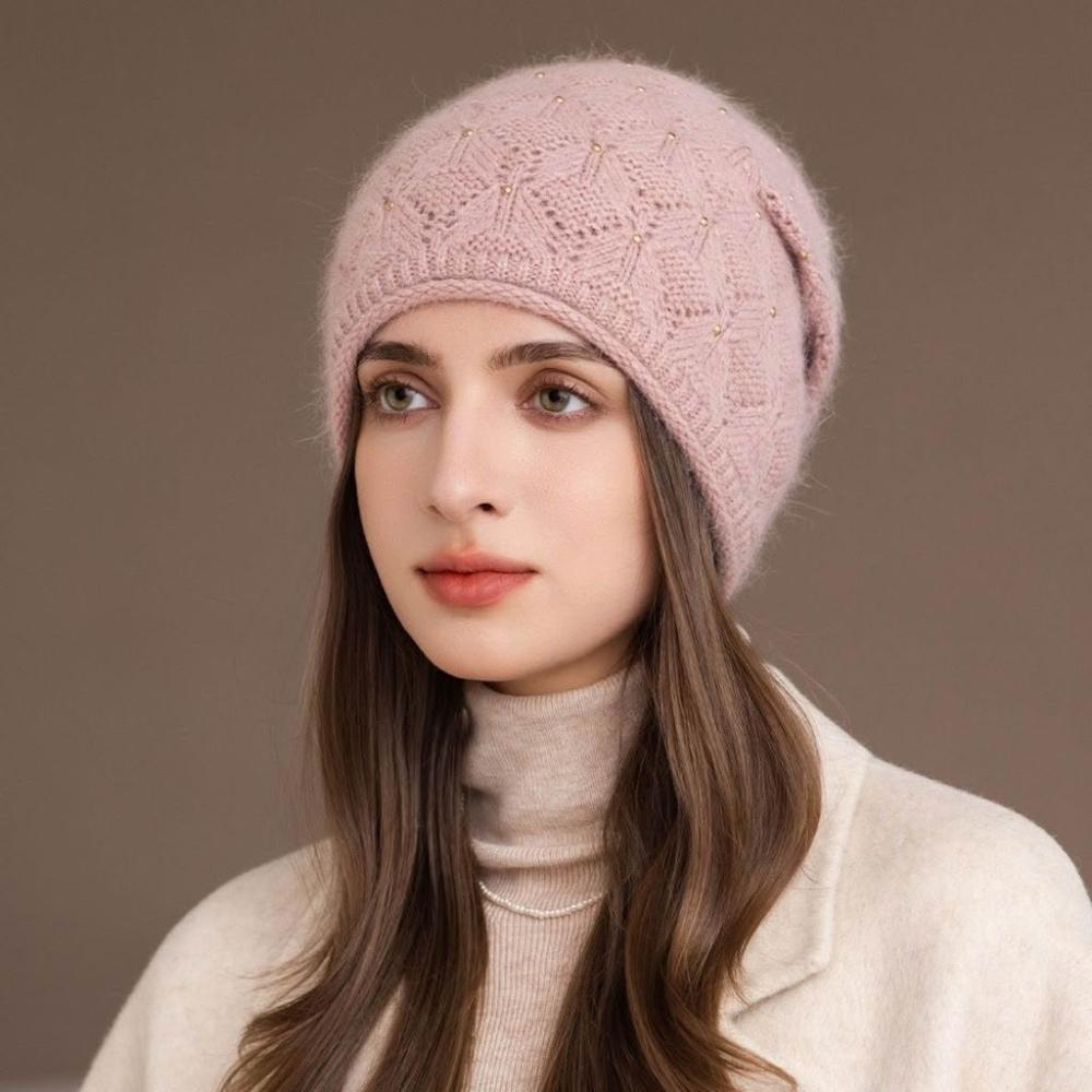 Fortune兔毛帽子女冬季媽媽保暖套頭帽中老年百搭韓版針織包頭帽貝雷帽