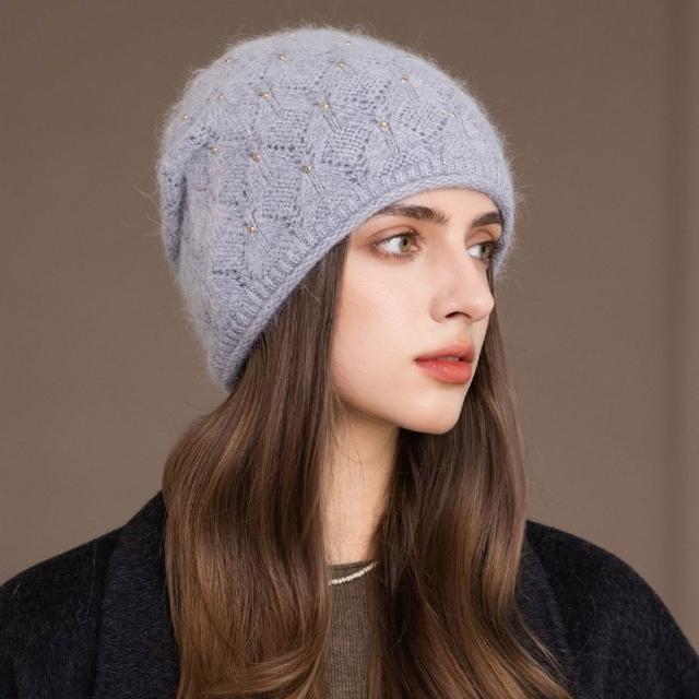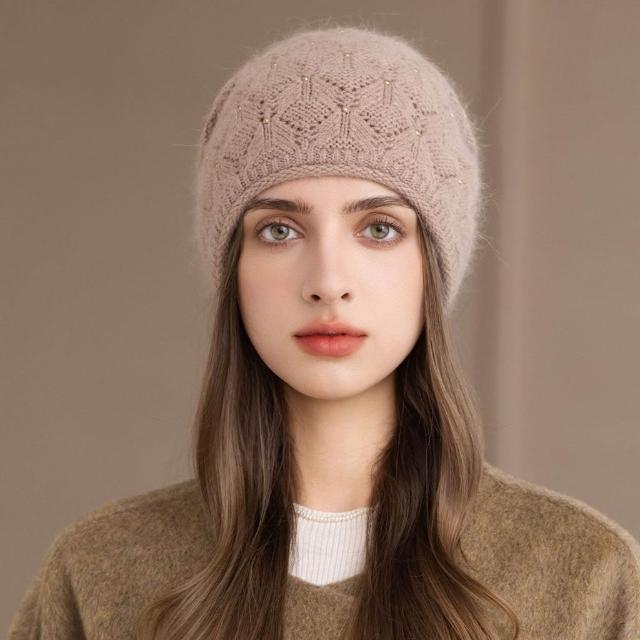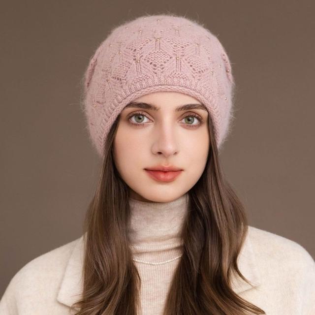 Fortune兔毛帽子女冬季媽媽保暖套頭帽中老年百搭韓版針織包頭帽貝雷帽