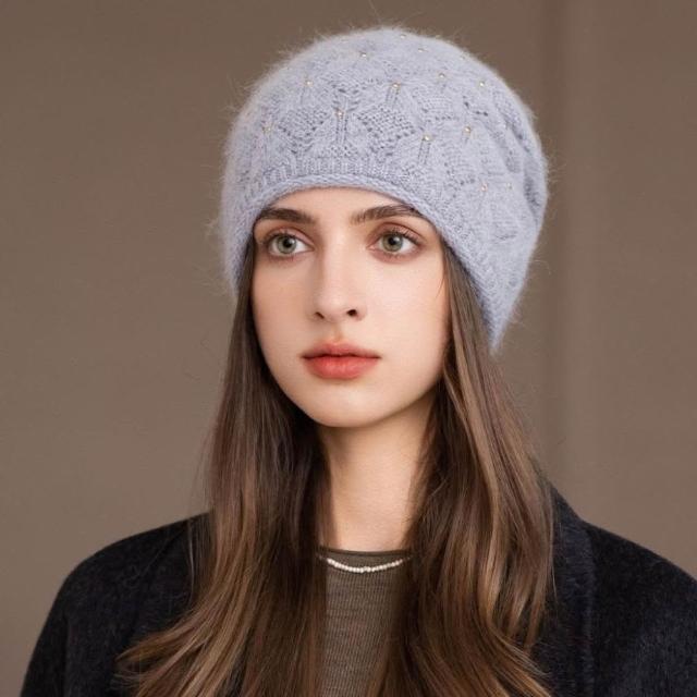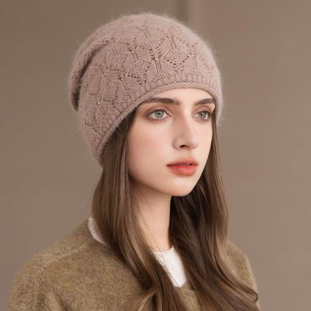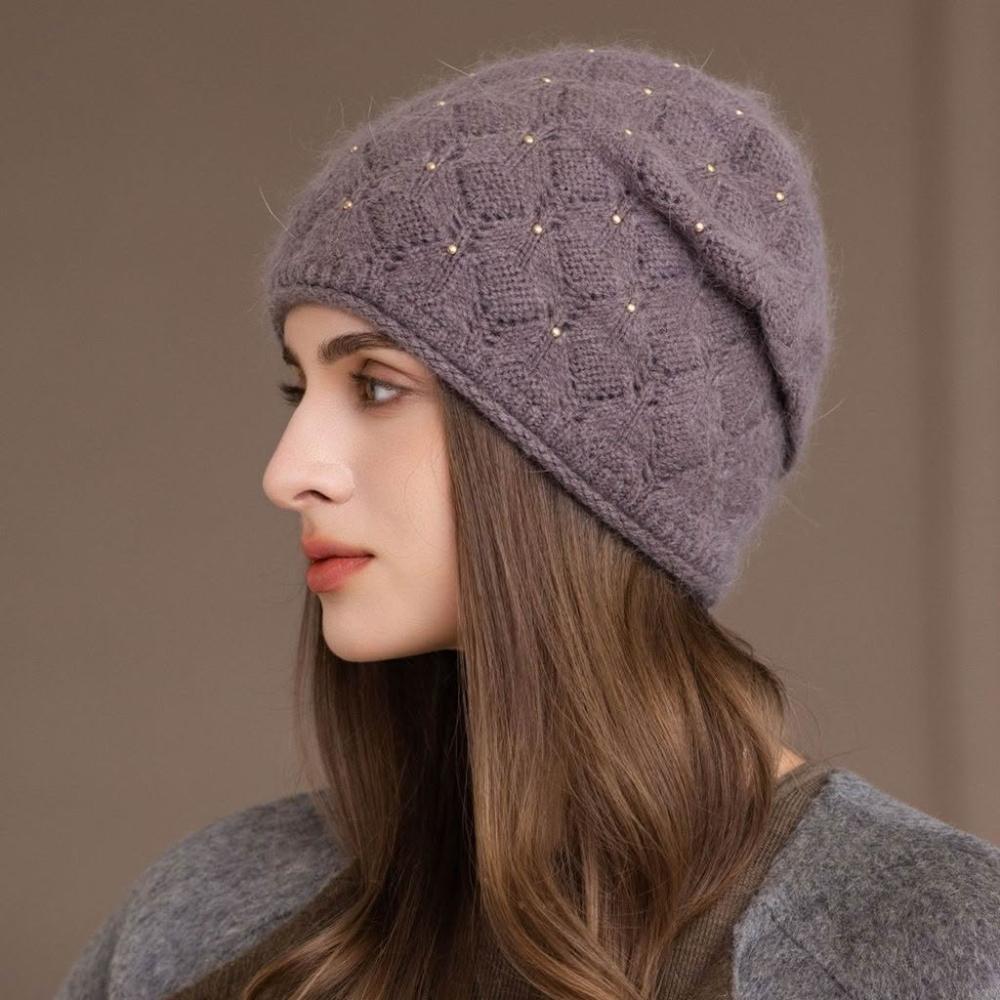 Fortune兔毛帽子女冬季媽媽保暖套頭帽中老年百搭韓版針織包頭帽貝雷帽