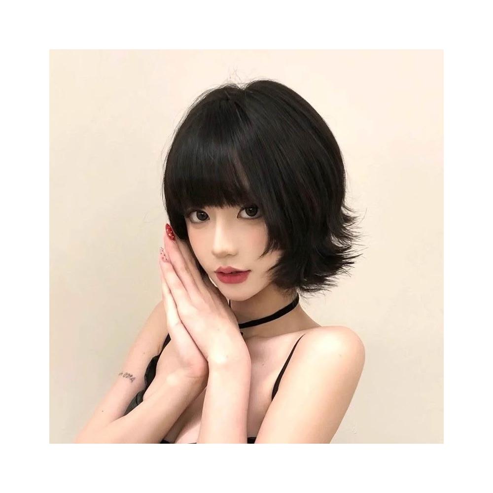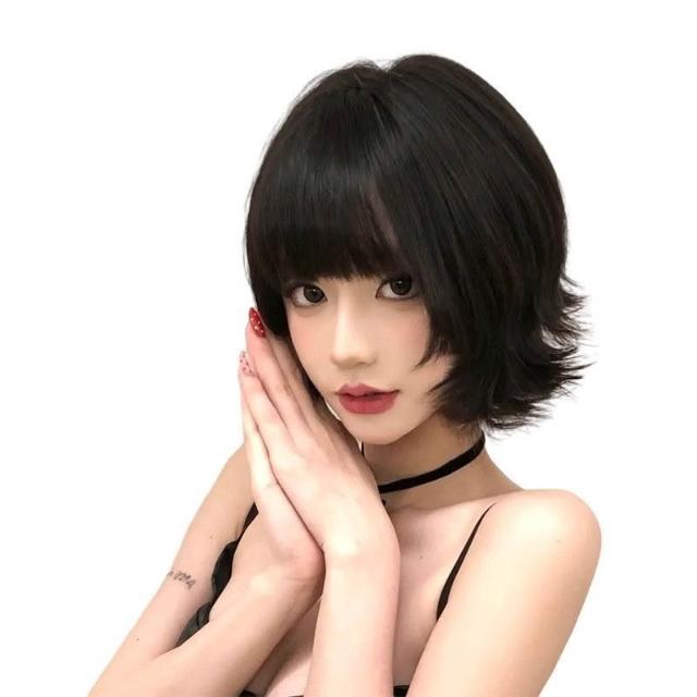 Fortune紅辣椒色同款髮型假髮女短髮黑色自然日常外翻翹翹頭y2k整頂假髮