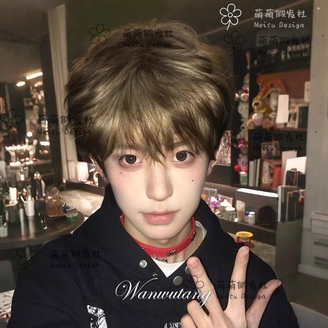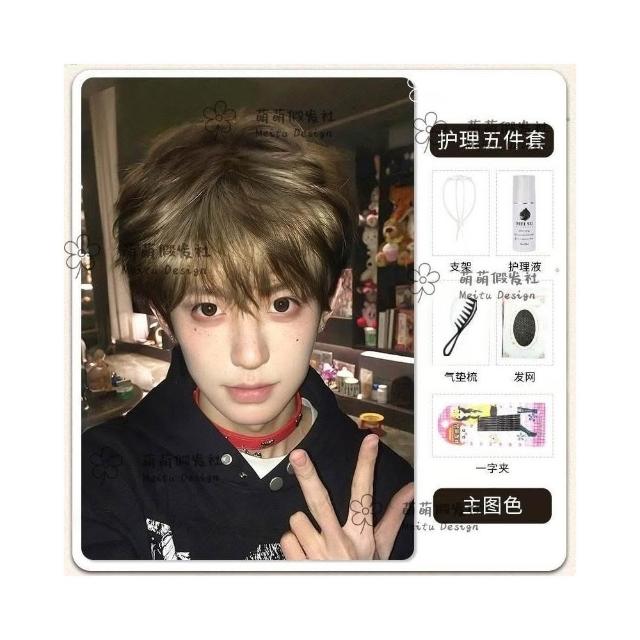 Fortune男士假髮短髮男生黑金挑染微分碎蓋男款仿真全頭套式