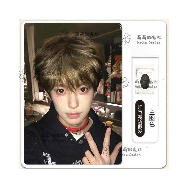 Fortune男士假髮短髮男生黑金挑染微分碎蓋男款仿真全頭套式