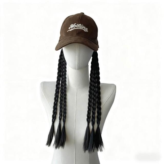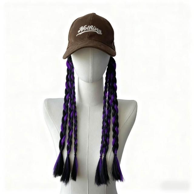 Fortune帽子假髮一體時尚手工辮子全頭套新款彩色仿真挑染馬尾辮髮飾