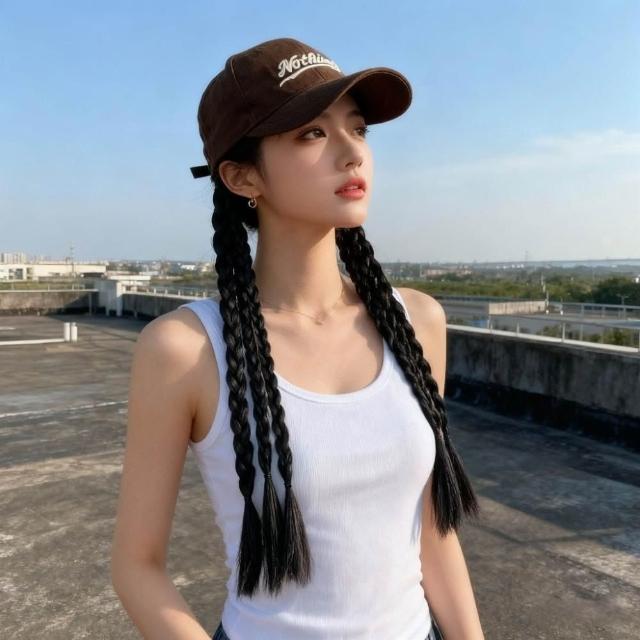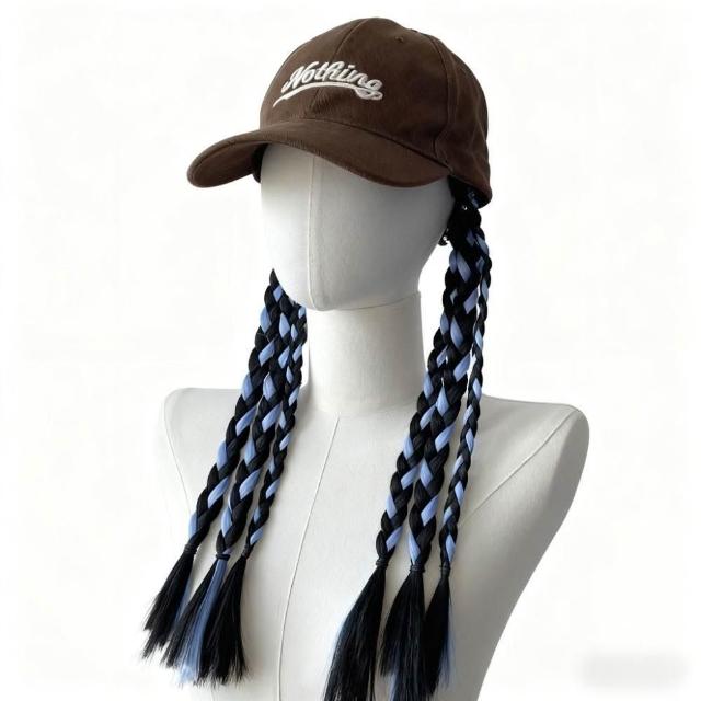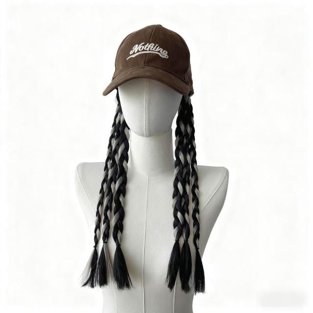 Fortune帽子假髮一體時尚手工辮子全頭套新款彩色仿真挑染馬尾辮髮飾