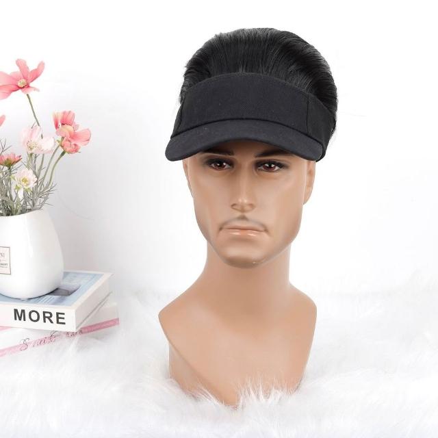Fortune帽子假髮男士棒球帽短款大背頭鴨舌帽化纖絲假髮頭套跨境假髮套
