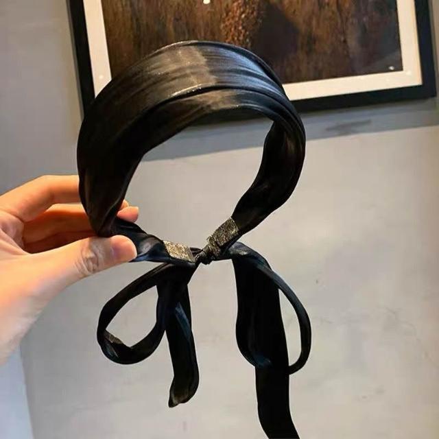 Fortune海邊真絲髮箍帶飄帶韓國綠色髮帶女綁發純色高級感頭箍森系頭飾女