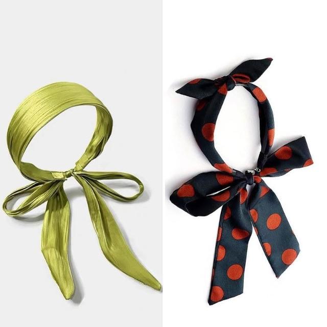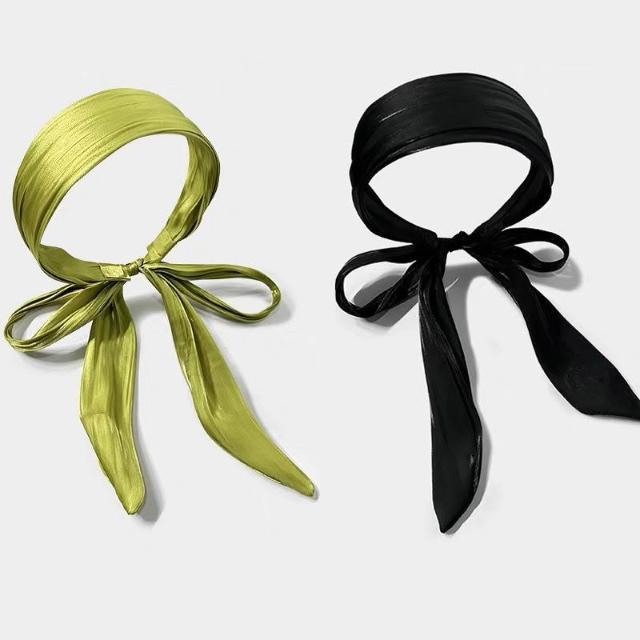 Fortune海邊真絲髮箍帶飄帶韓國綠色髮帶女綁發純色高級感頭箍森系頭飾女